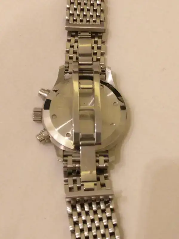 Mecanismo: calibre Jaeger leCoultre 631 mecaquartz. El segundero de la hora (contador de las 6) se mueve como un cuarzo, a saltos. El cronógrafo (segundero central) se mueve como un mecánico, movimiento seguido. Resetea como un calibre mecánico. Es un mecanismo con 233 componentes y podéis saber más de él aquí.