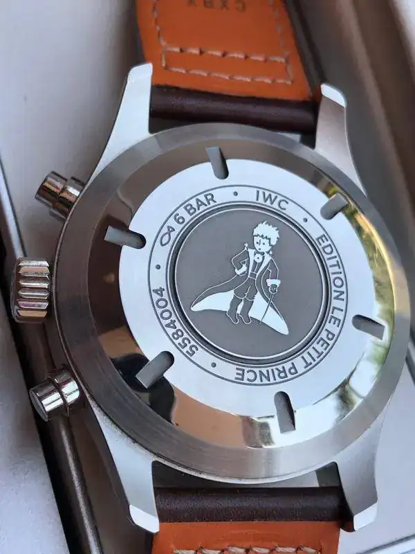 Uno de los relojes más emblemáticos de IWC, una aténtica maravilla, en su edición especial "El Principito". El reloj fue comprado en El Corte Inglés este mismo año y ha tenido muy pocas puestas. No lo puedo calificar de reestreno porque tiene leves marquitas de uso, pero nada importante ni que afecte al zafiro, que con su doble antirreflejos es impresionante. Correa original de piel, en magnífico estado y hebilla firmada.
