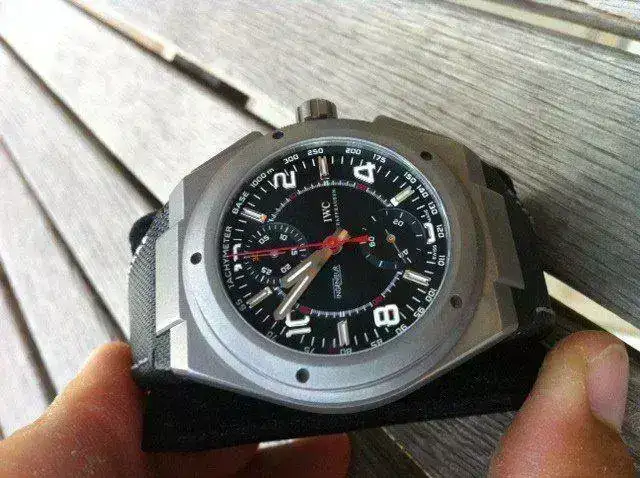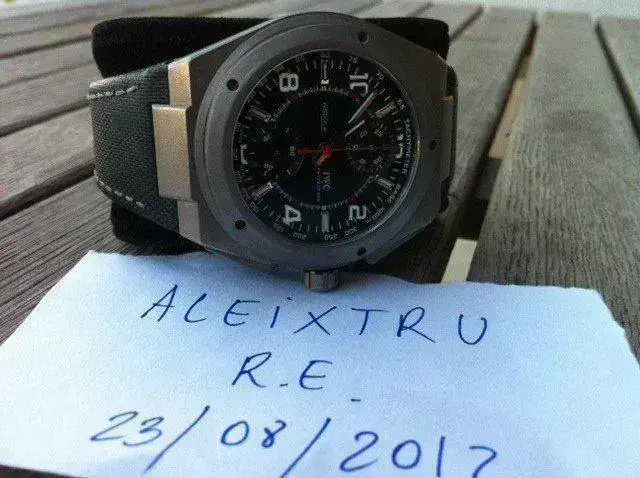 Otro que sale, un IWC Ingenieur AMG Chrono, en titanio. El reloj está en perfecto estado, a excepción de una pequeña marca en la correa de kevlar (ver foto).