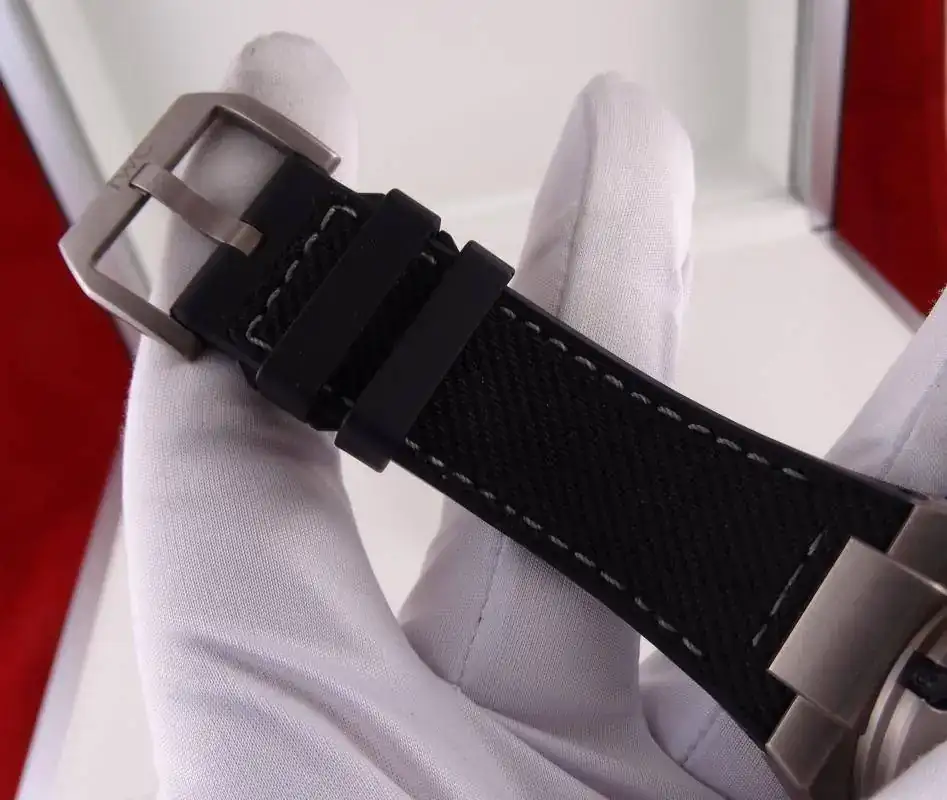 La caja de titanio y una correa extremadamente adaptable, convierten al reloj de 45mm en una pieza apta para un amplio abanico de medidas de muñeca.