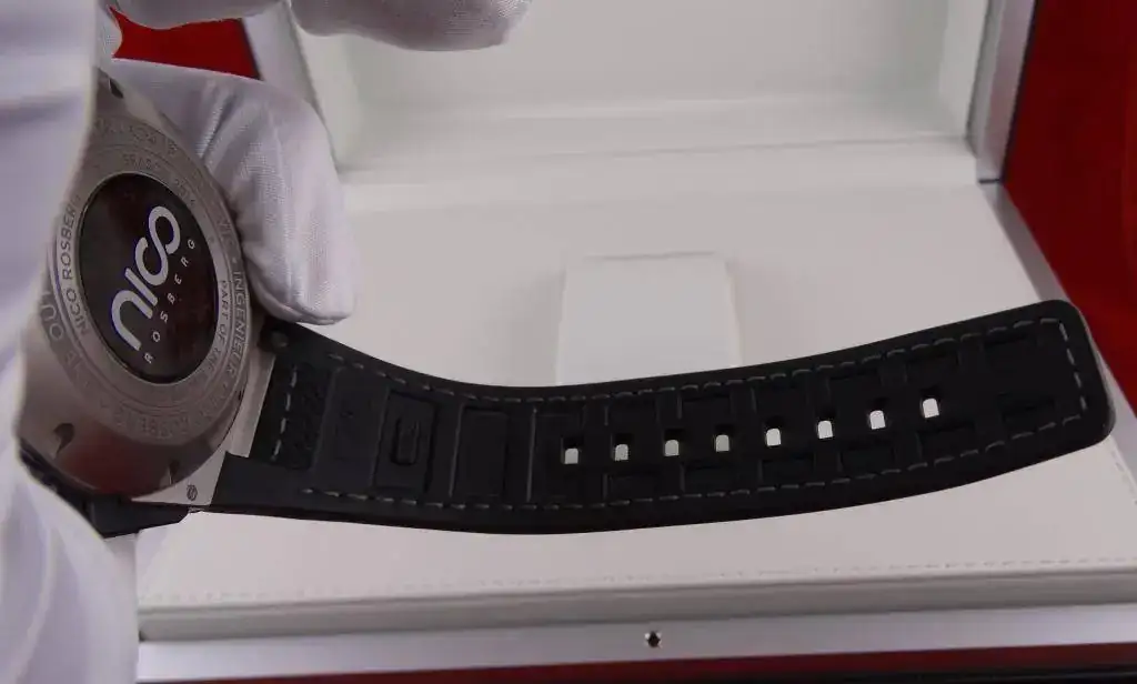 Uno de los herederos del diseño Genta, con una estética más moderna y deportiva, es el reloj que sacamos hoy a la venta; una evolución del Ingenieur, uno de los modelos más representativos de la casa IWC. El cronógrafo Flyback, inspirado en la F1 y que viene con la trasera con un trozo de fibra de carbono del coche de Nico Rosberg de 2014, por supuesto con su correspondiente certificado.
