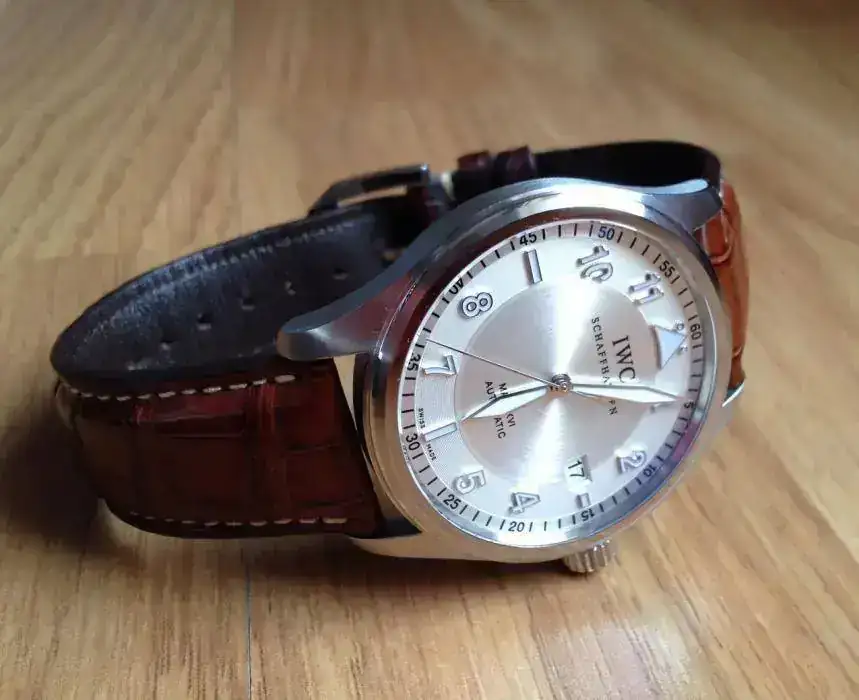 Aun así le compré otra correa distinta a la original (no IWC), esta vez de color negro, porque le daba un toque más elegante (si cabe) al reloj. Pongo dos fotos con la correa negra y el resto van con su correa marrón original.