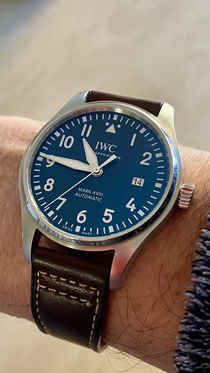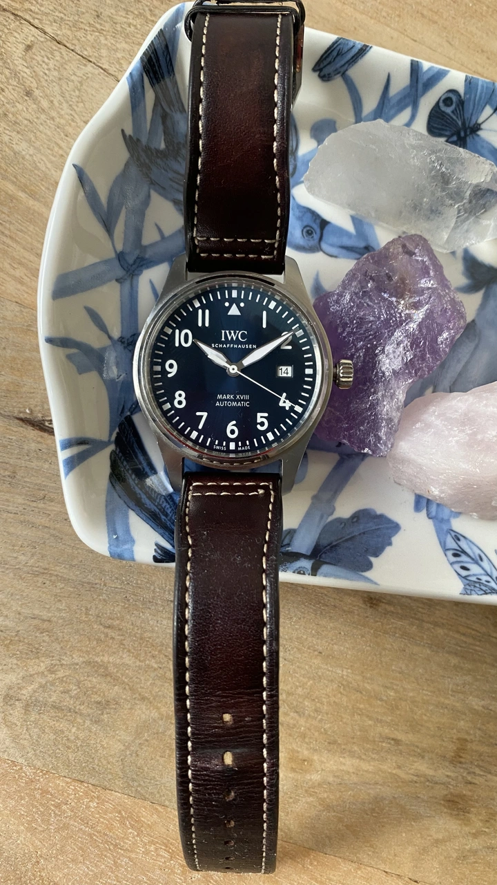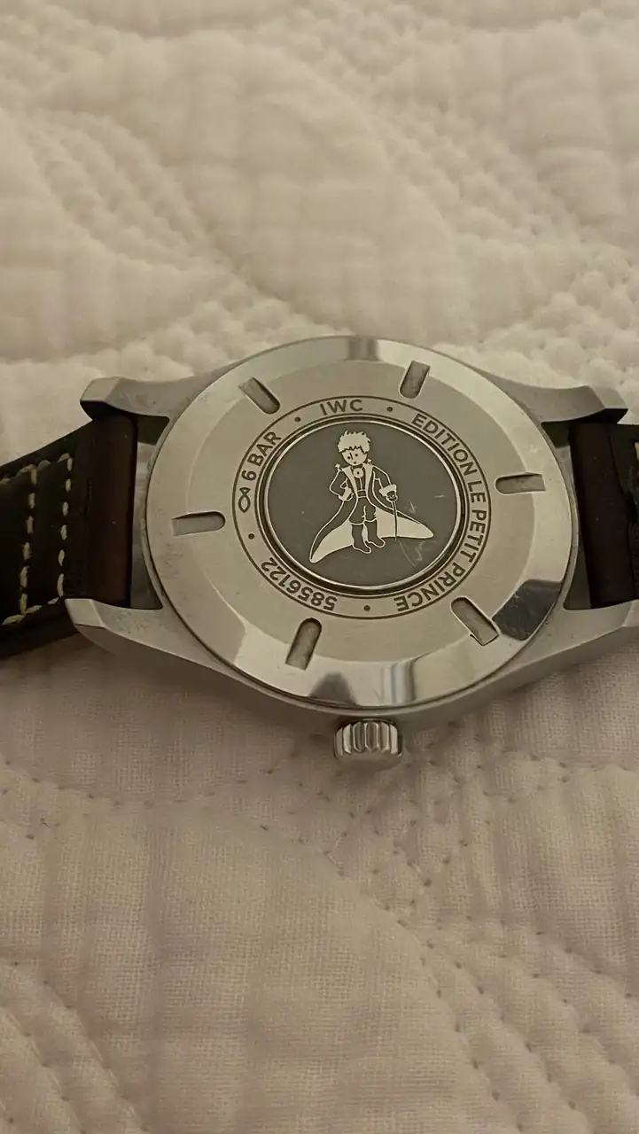 La verdad es que tiene una esfera de un color que por aqui llamamos hipnótico, un azul realmente único que provoca una magnífica legibilidad. Sus 40 mm hacen que se adapte muy bien a mi muñeca y esta estética flieger con correa de vacuno lo hace ser muy polivalente. La trasera no vista lleva una silueta del petit prince.