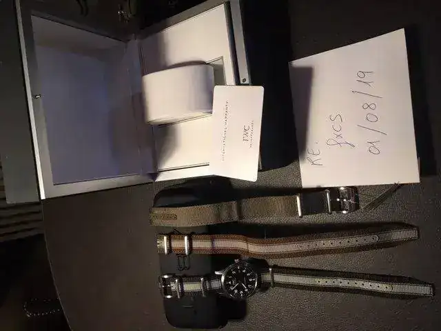La dotación es completa,y lleva 3 correas todas originales IWC,la de serie aún sin estrenar y con una hebilla adicional.Otra sin uso y la que se ha usado en perfectísimo estado.