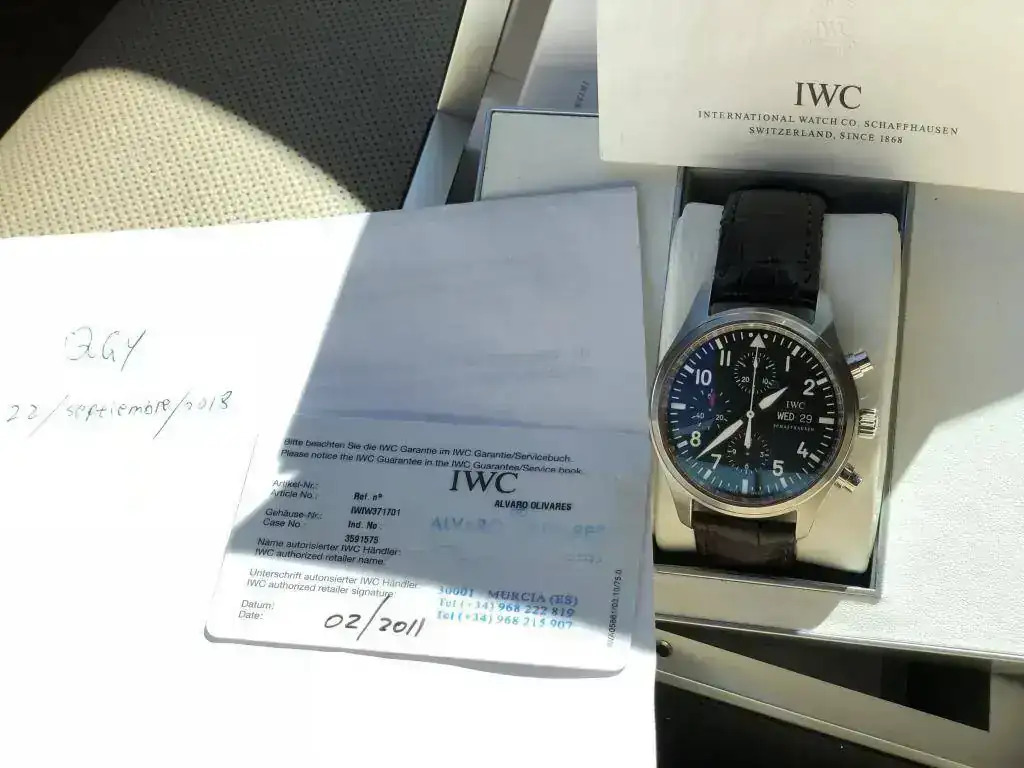 vendo IWC PILOT CHRONO 3717 reestreno full comprado en concesionario nacional en 2011 cuatro puestas, nunca pulido en estado reestreno, completo de caja y documentaciones.