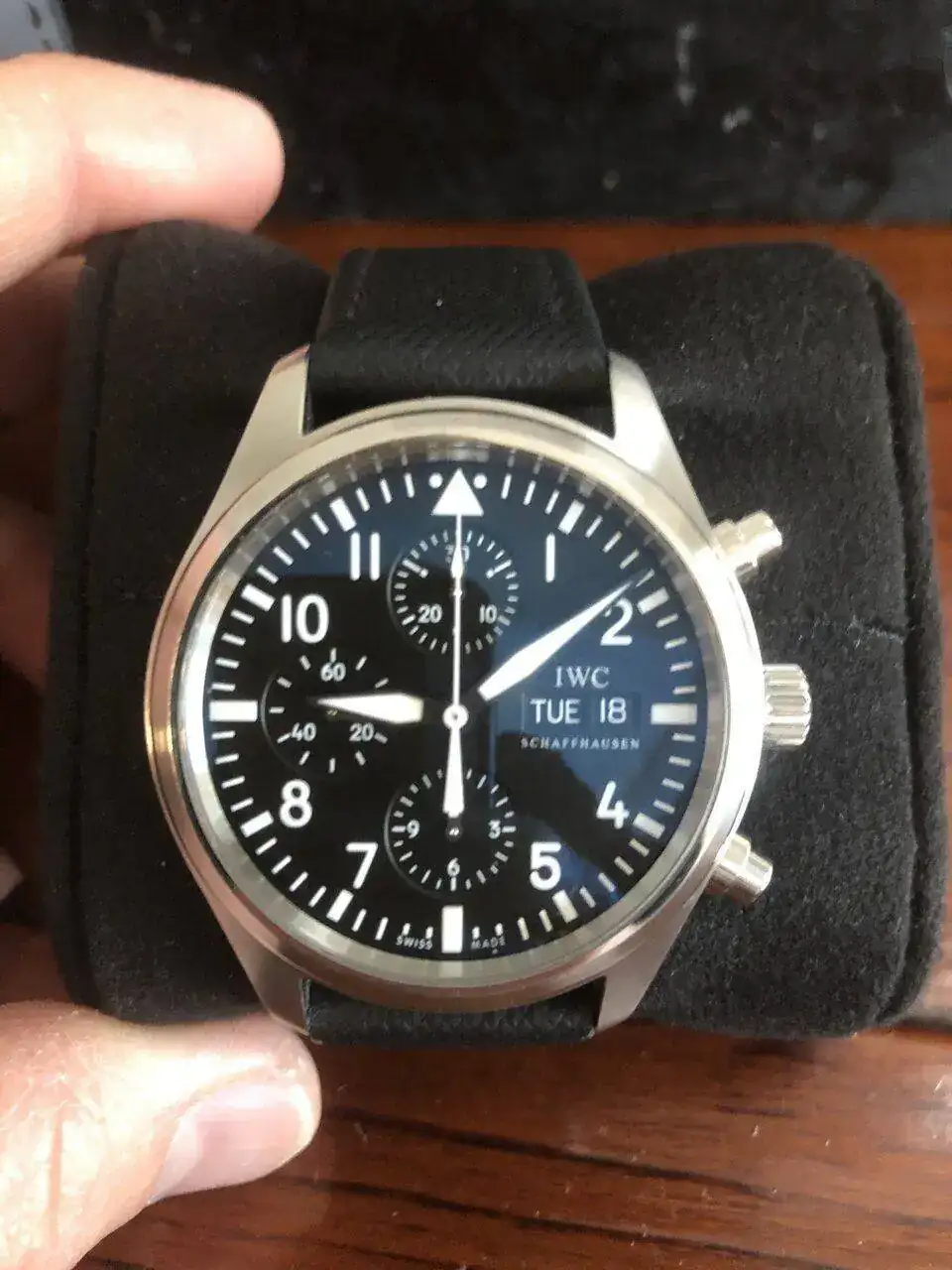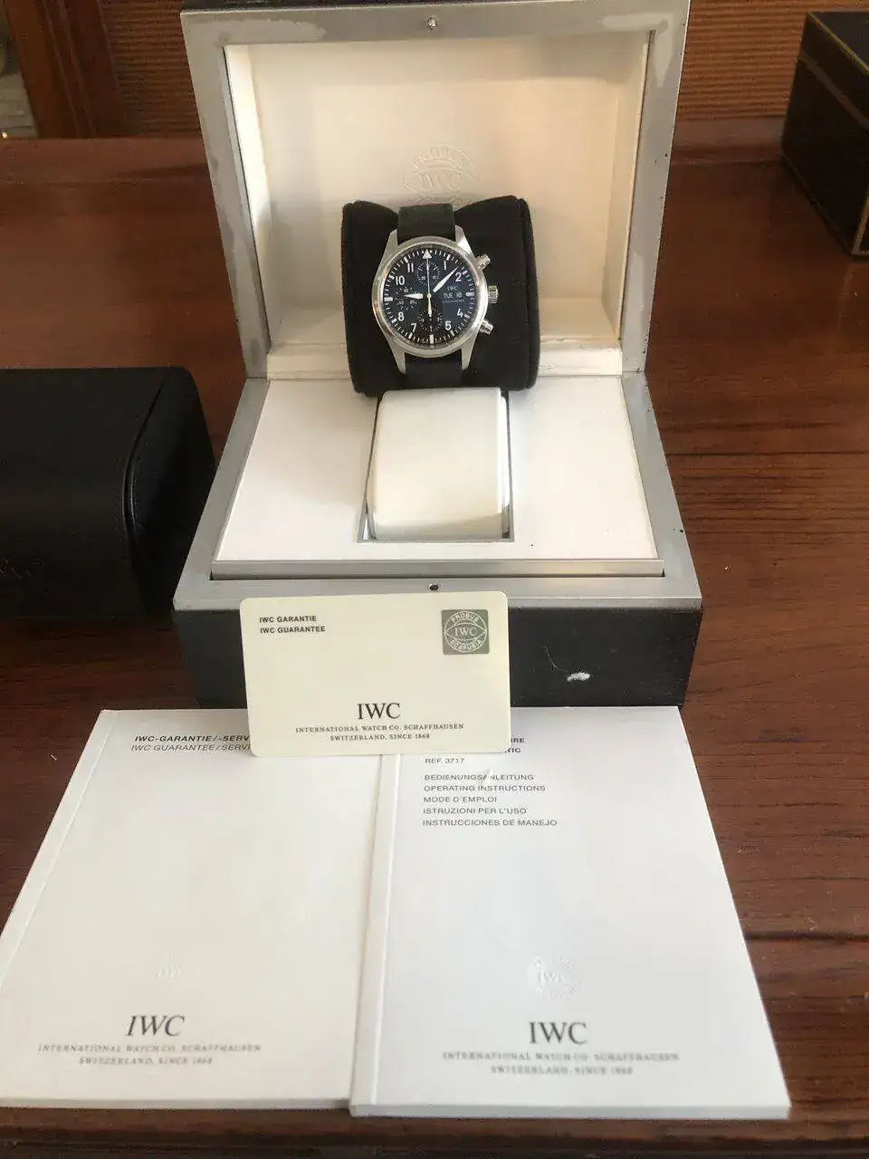 Vendo IWC PILOT CRONO 371701 en buen estado. Modelo de 42 mm del 2008 en buen estado. Tiene alguna marca de uso. El reloj funciona perfectamente, lo único es el cambio del número de día tarda en hacerlo, para mi no es un problema pero lo indico.
