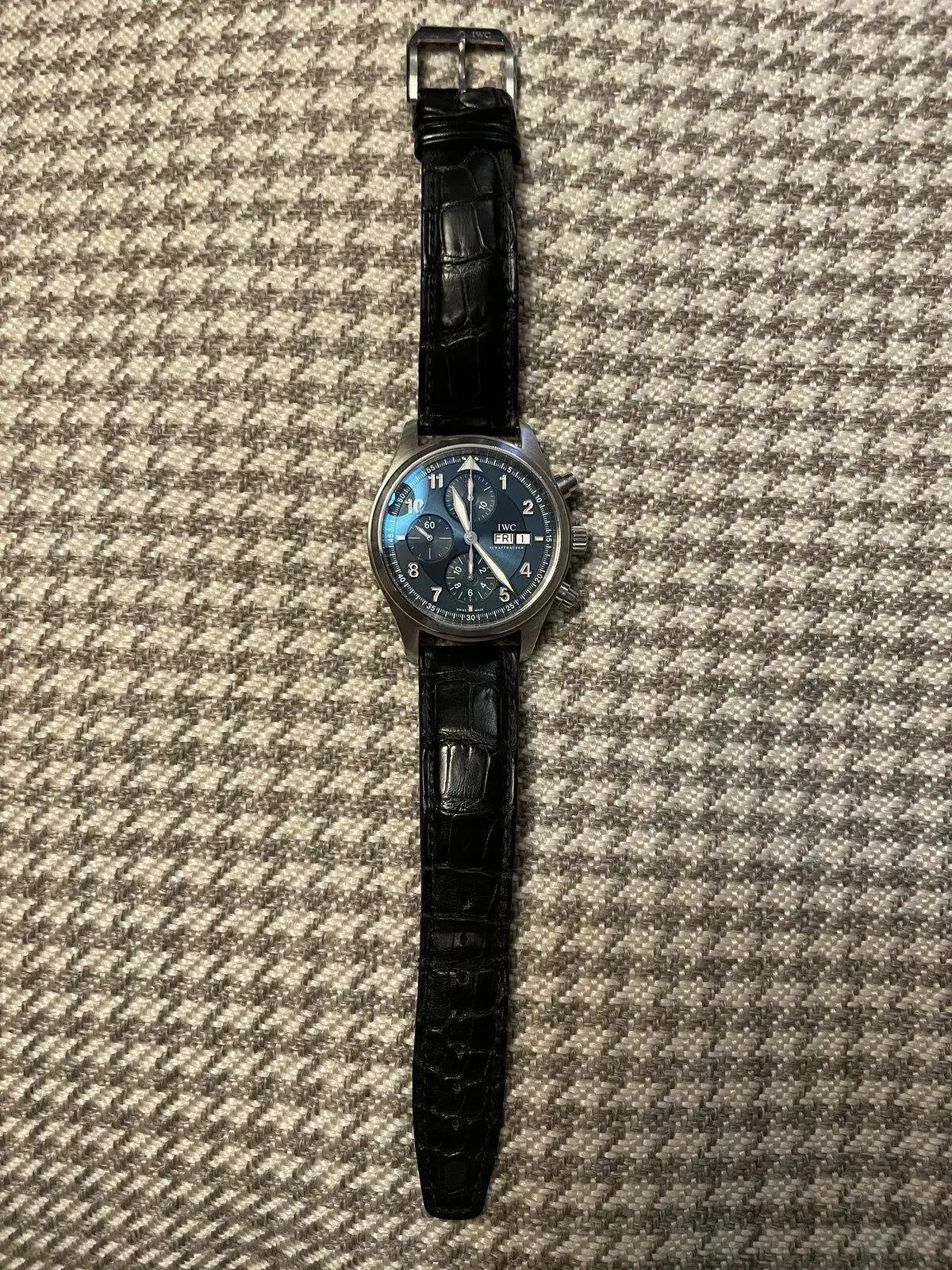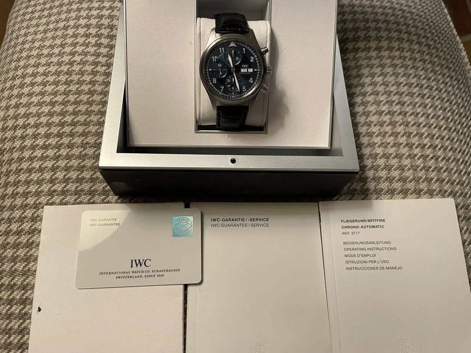 para sufragar nuevos gastos extra relojeriles, he de vaciar un poco la caja, así que, con gran pesar, he de poner en venta este magnífico IWC SPITFIRE LAUREUS de 42 mm con una preciosa esfera azul.