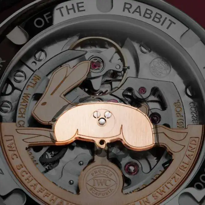 El movimiento es el calibre interno interno suizo IWC con 31 rubies , 28.800 vph y una reserva de energía de 60 horas. Cuenta con el sistema de bobinado automático Pellaton y un rotor chapado en oro en forma de conejo. Las funciones son: horas, minutos y pequeños segundos