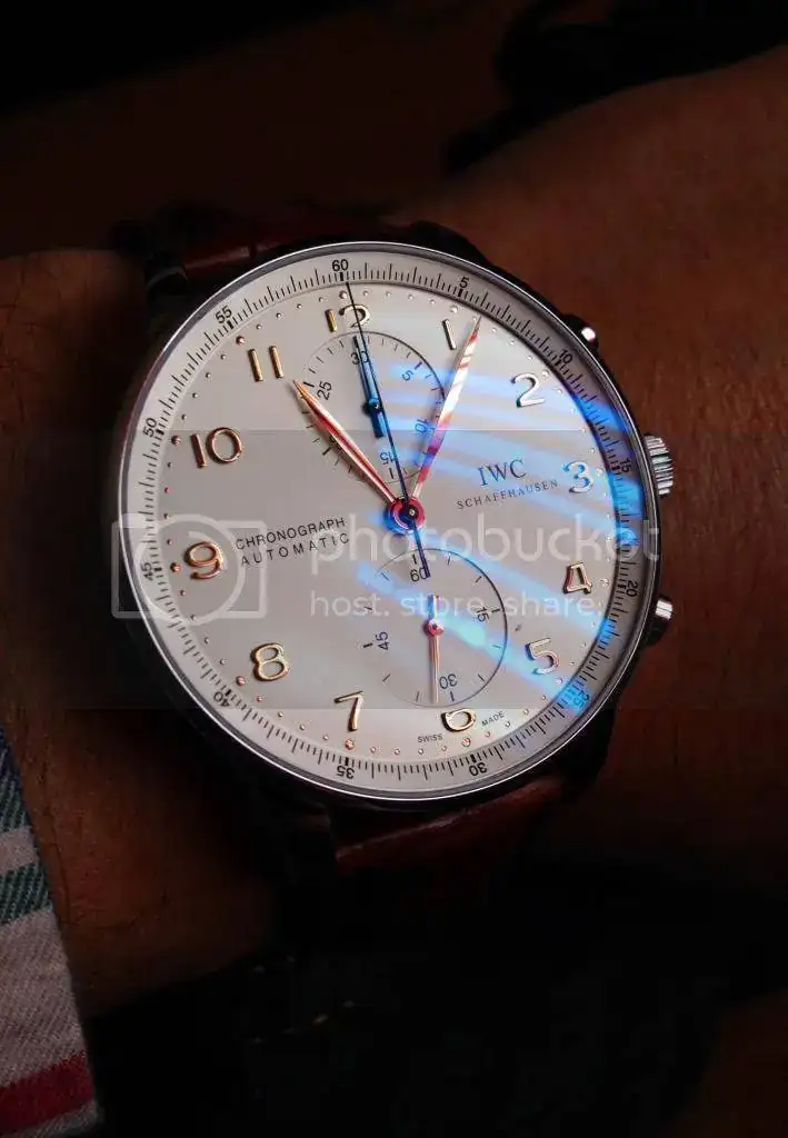Ando detrás de otra pieza, por lo que me he decidido a sacar uno de los relojes que no utilizo para facilitar la compra de dicha pieza. Se trata del modelo IWC Portugués Crono (ref. IW371445), con índices y agujas en oro rosa: