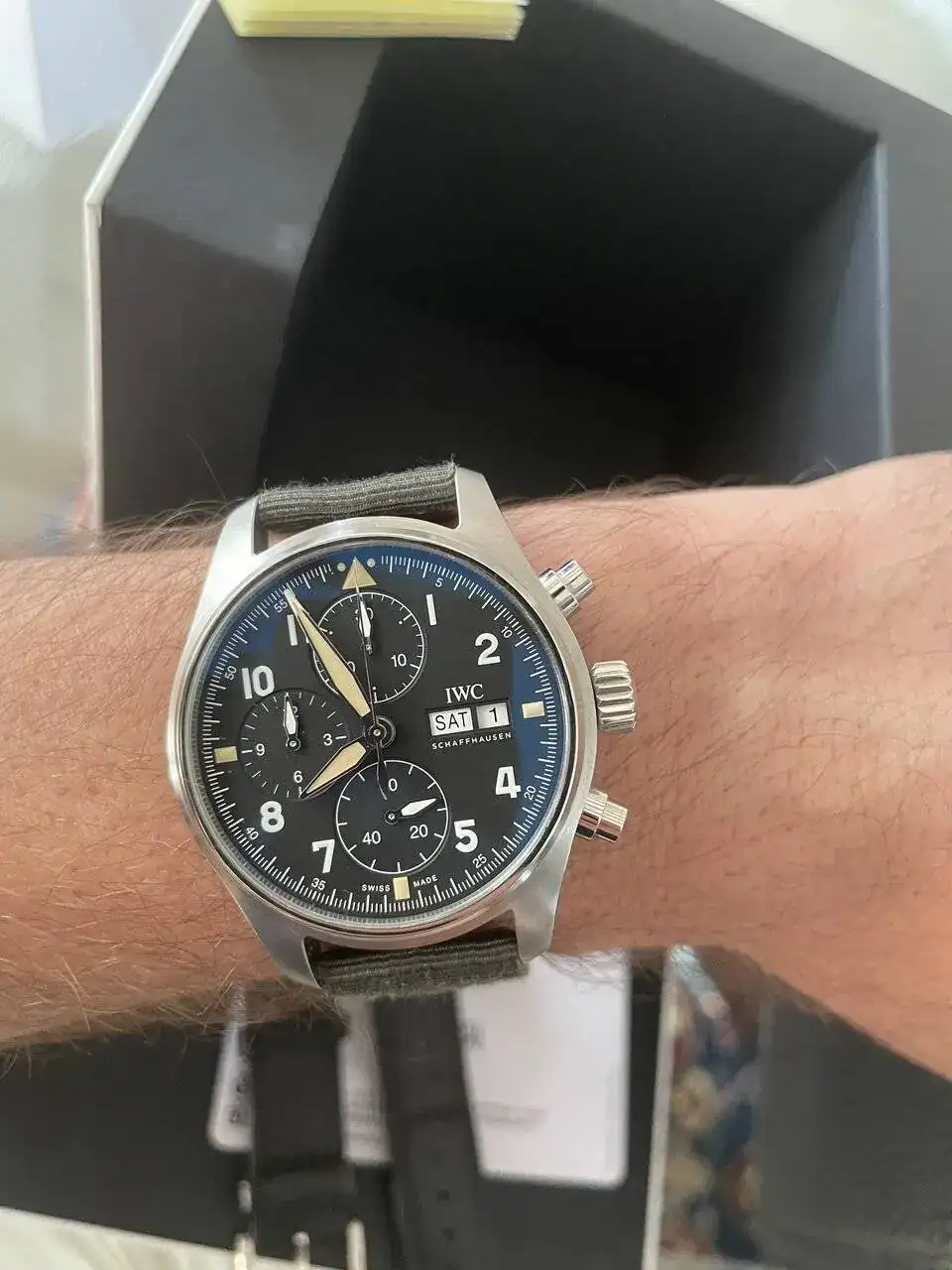 Nuevamente por una entrada toca vaciar caja y con gran pesar, le toca salir a este estupendo IWC Spitfire Chronograph, referencia IW387903.