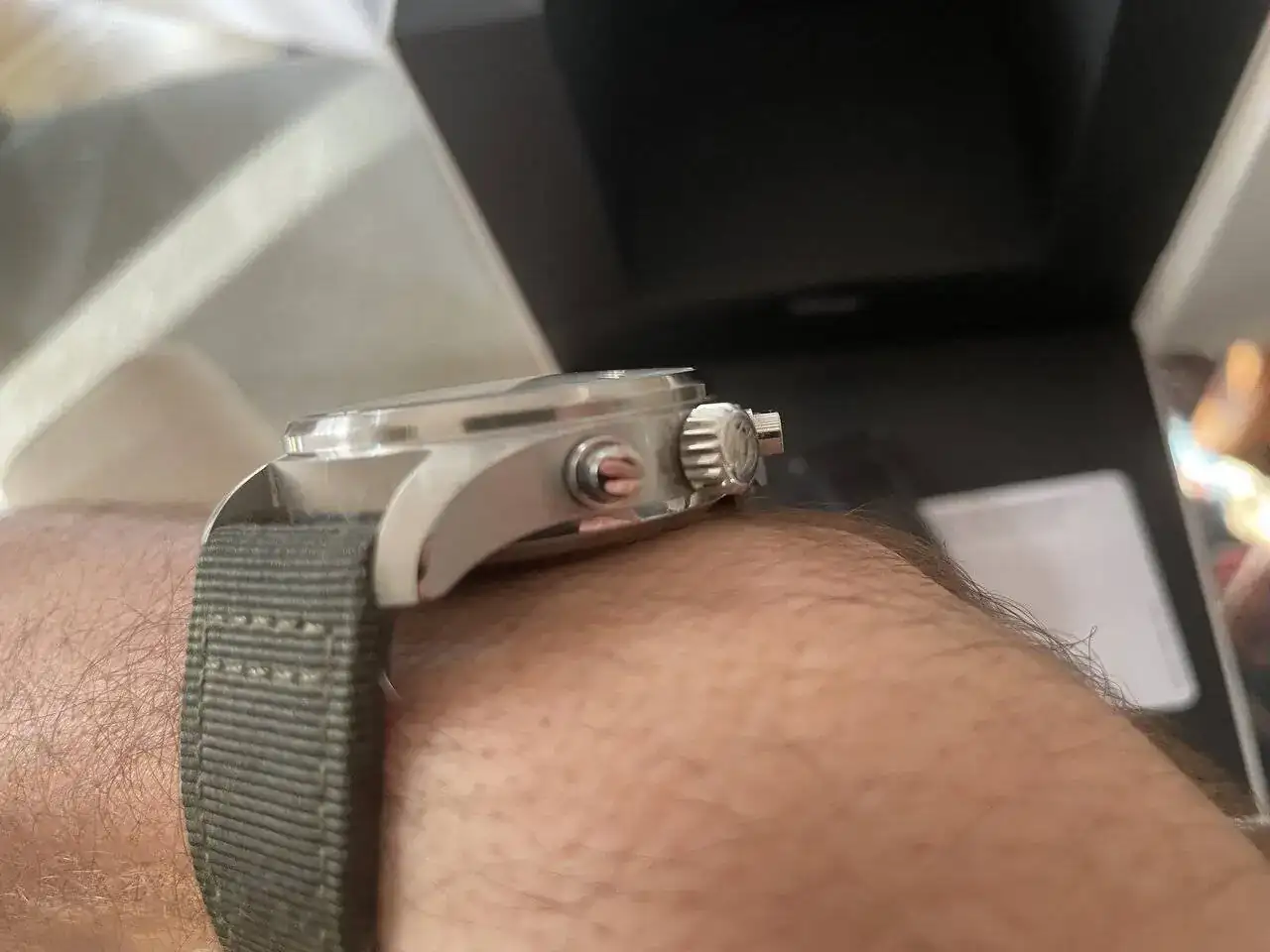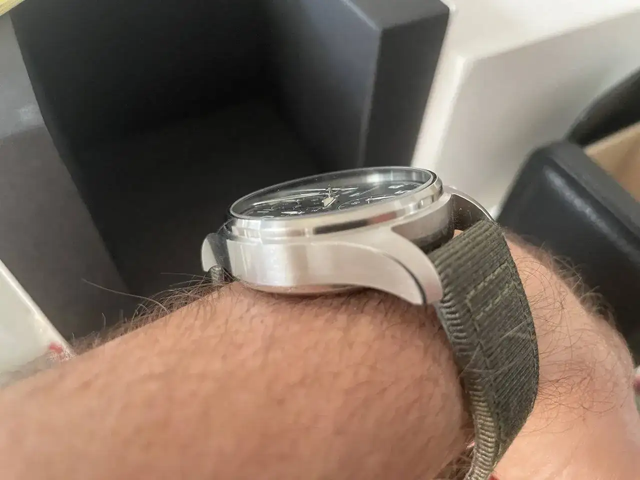 La correa original de piel negra está como nueva y la he usado algo con una aftermarket verde de nylon que es con la que sale en las fotos.