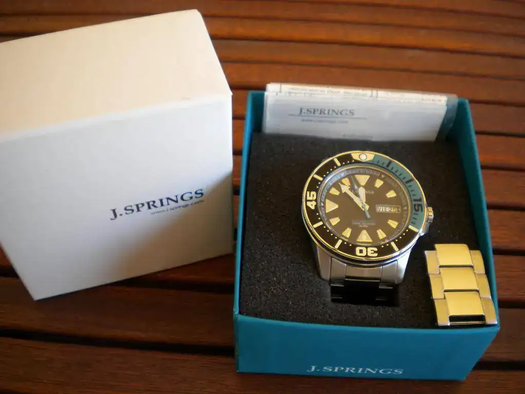 Vendo J, Springs BEB040. Como sabéis, se trata de una marca del Grupo Seiko. Mide 43 mm. WR 100 m. Monta un calibre Y676 (como el 7S26), 21 jewels. El reloj está en muy buen estado. Casi sin uso, aunque presenta las típicas microrayas casi inapeciables en las zonas pulidas. Se entrega con toda su dotación: caja, manual, eslabones sobrantes.