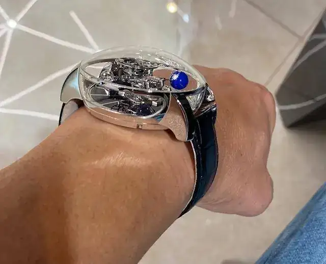 El tourbillon de triple eje Astronomia de Jacob & Co fue el primer reloj de este tipo en llegar al espacio, por no hablar de viajar más de 7 millones de millas a 17.500 millas por hora. Con un funcionamiento perfecto, regresó a la Tierra tras 273 órbitas, a tiempo para ser subastado por Sotheby's Nueva York a beneficio del Instituto Davidson de Educación Científica en julio de 2022.