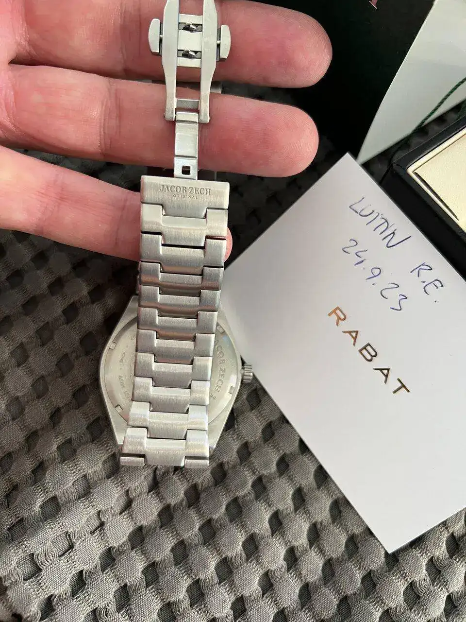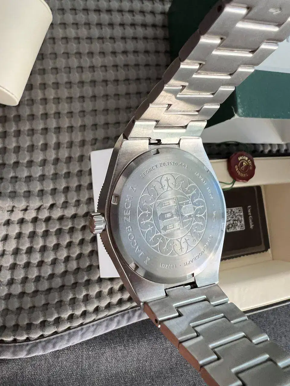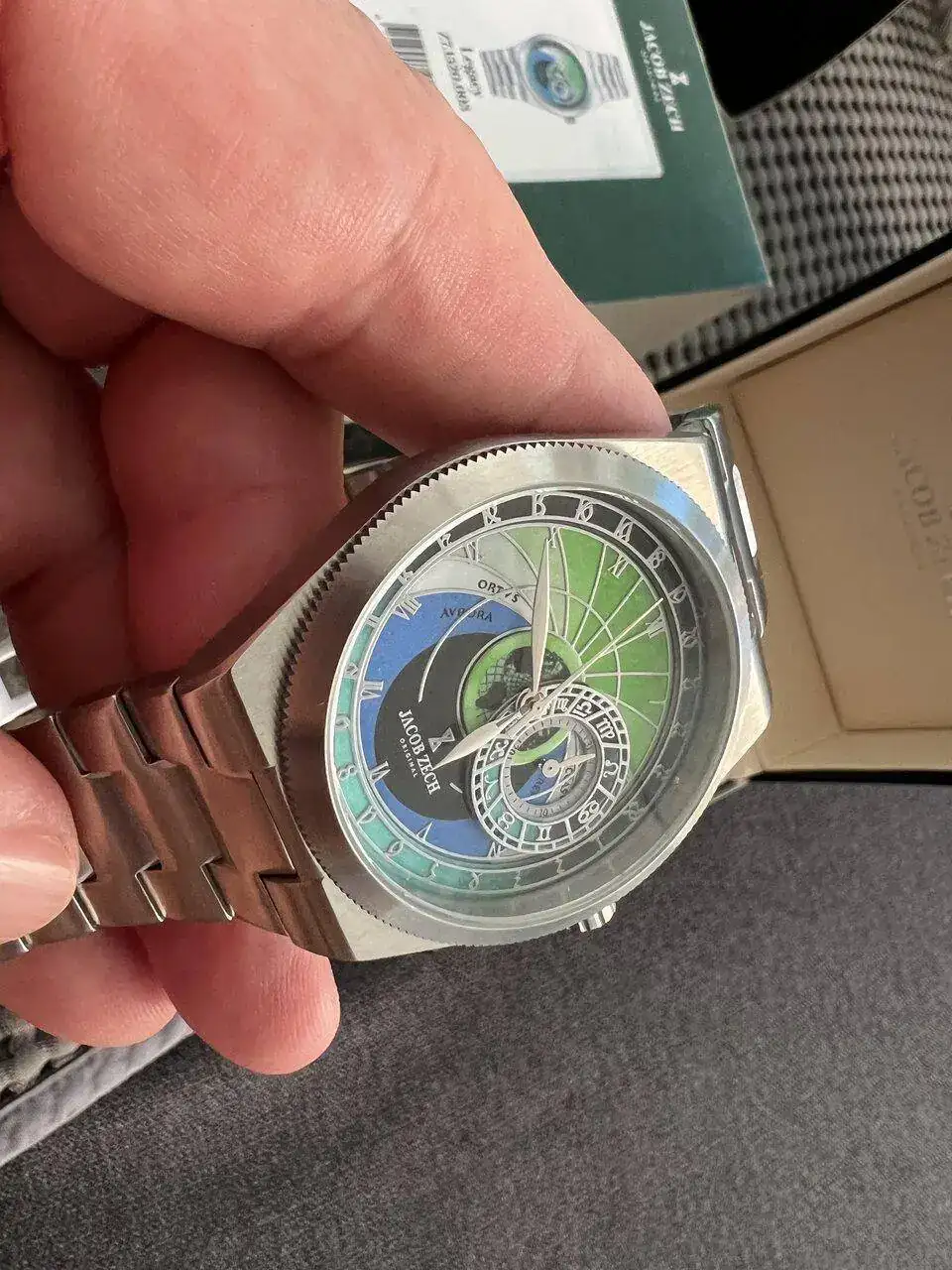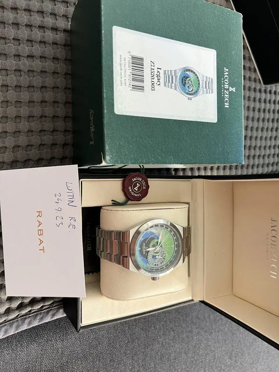 saco a venta este reloj Jacob Zech espectacular, nevo, con toda su documentación; lleva el calibre de Seiko VH65 que funciona casi como si fuera un automático no se ven prácticamente los saltos de aguja a cada segundo