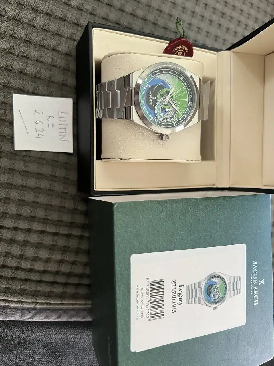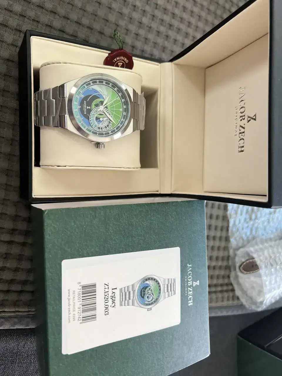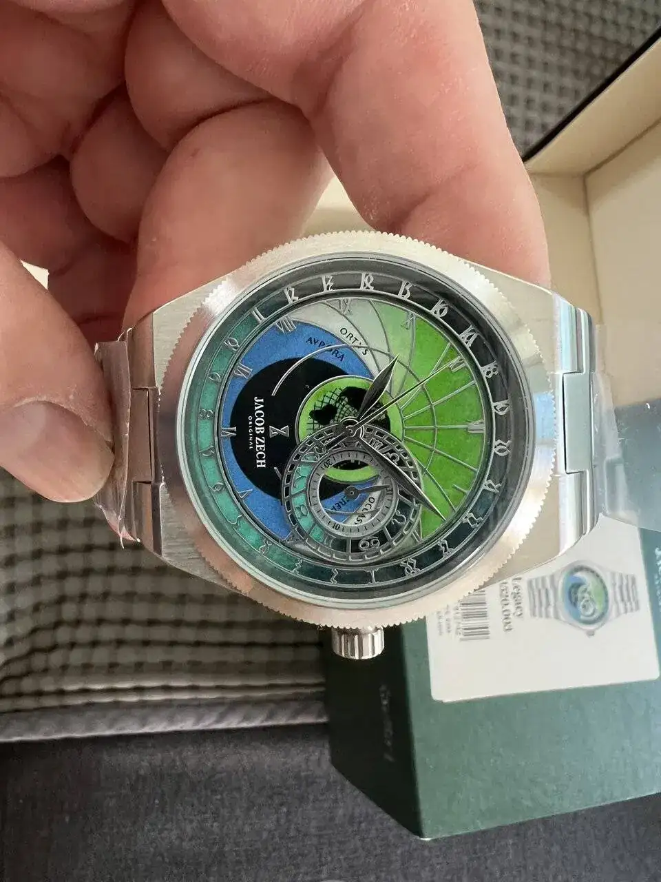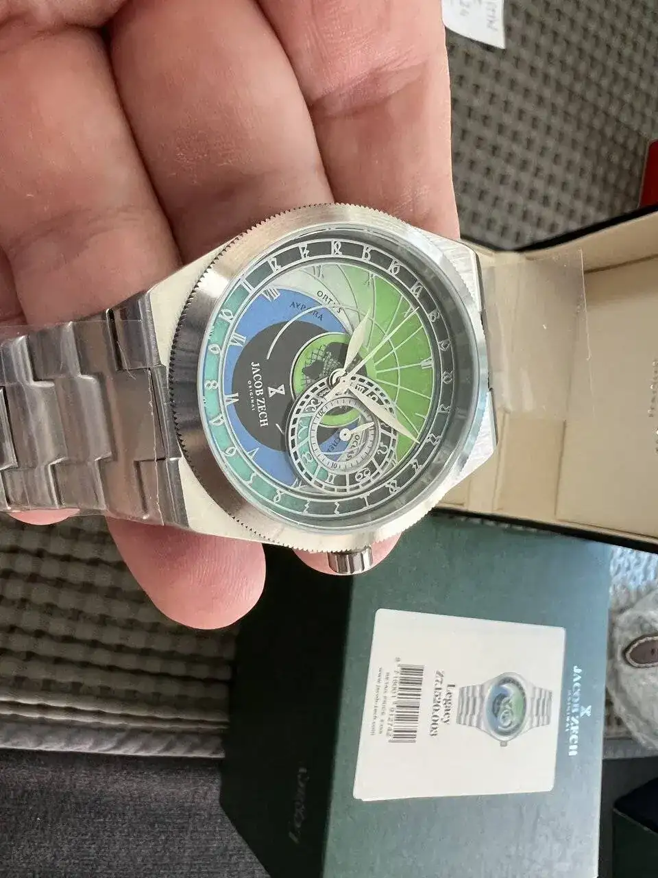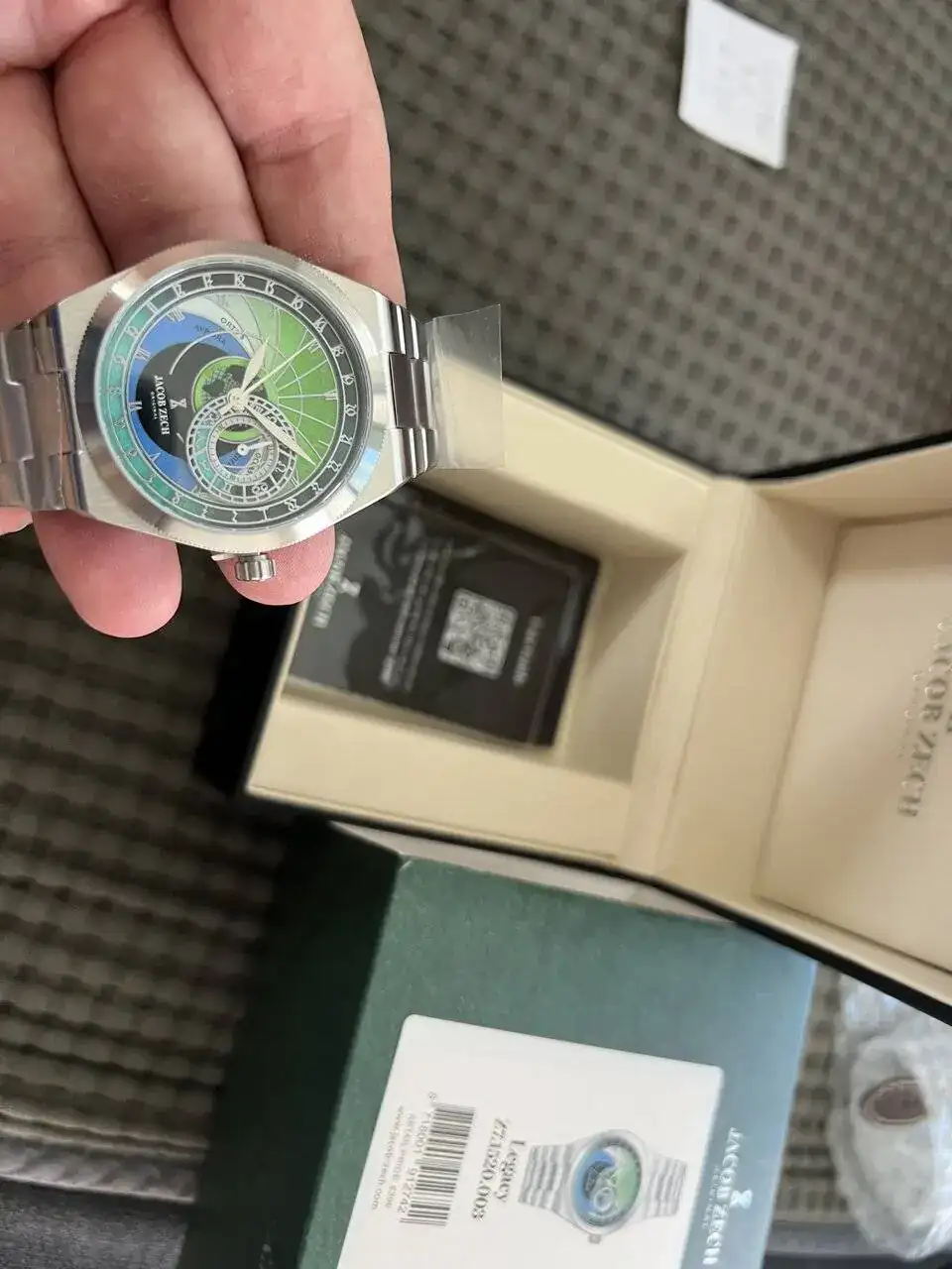 saco a venta este reloj Jacob Zech espectacular, nevo, con toda su documentación; lleva el calibre de Seiko VH65 que funciona casi como si fuera un automático no se ven prácticamente los saltos de aguja a cada segundo