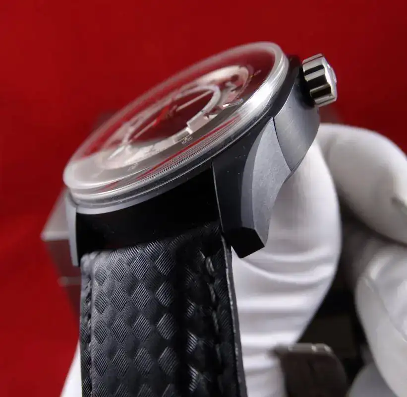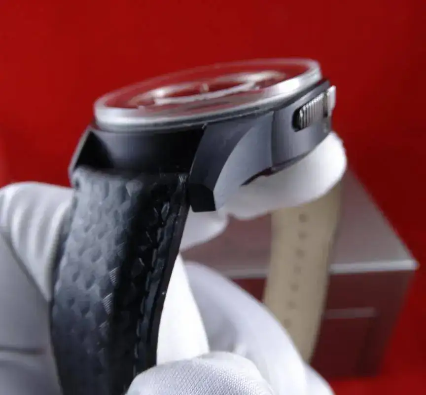 La pieza que ofrecemos hoy es un reloj muy especial, una Edición Limitada a 500 unidades, construido en titanio negro, un logo Aston Martin realmente discreto. Su tecnología destaca por un raro y exclusivo cronógrafo sin pulsadores, el crono funciona presionando la propia caja (a las 12 para puesta en marcha y parada; a las 6 para puesta a cero). Con sistema de bloqueo.