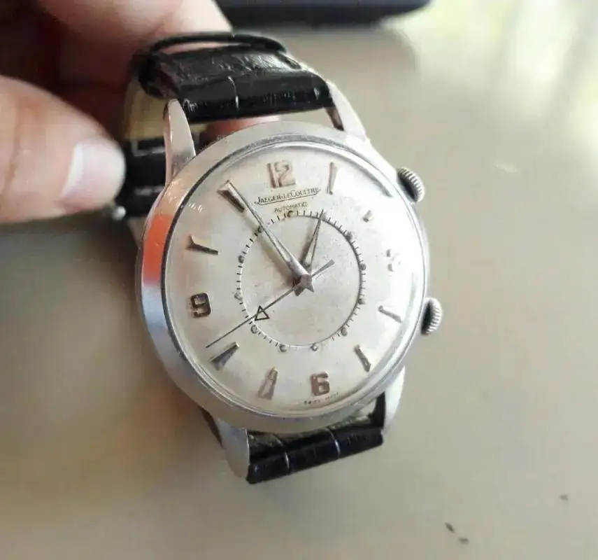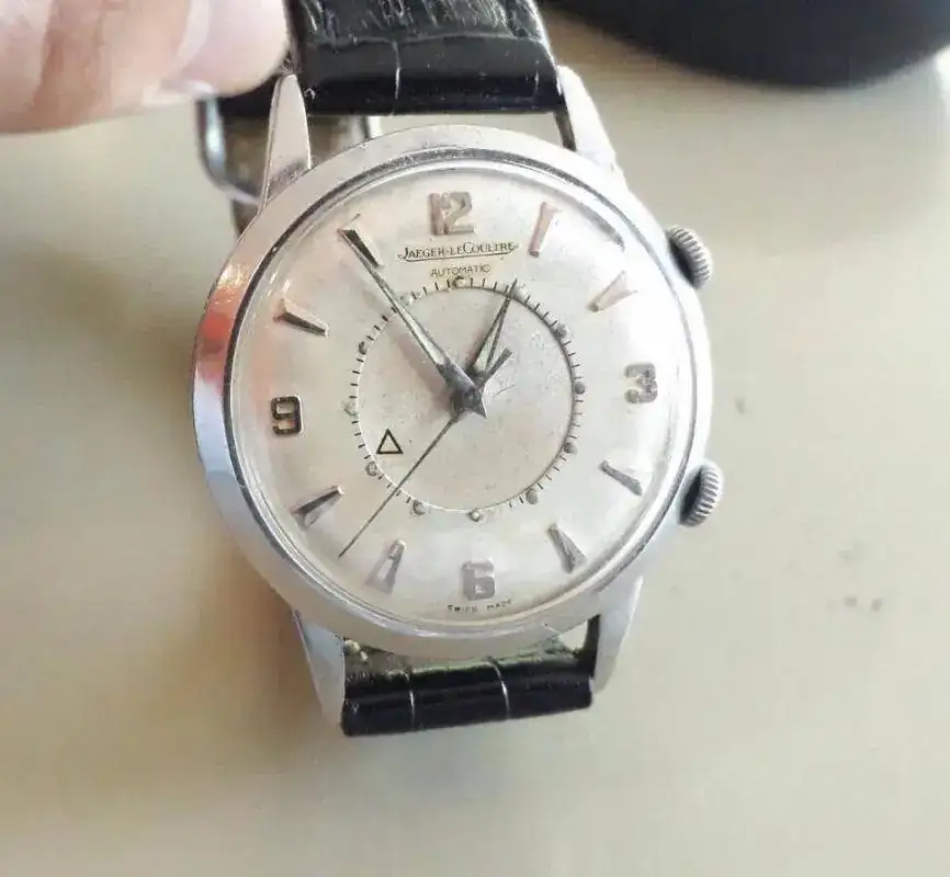 saco a la venta este bonito Jaeger LeCoultre Memovox automatico y con caja de acero. El reloj llego hace unos meses como regalo y no le doy el uso que debiera. El reloj funciona bien, la alarma perfecta, pero a nivel estetico necesita una puesta a punto. La esfera esta un poco sucia, con una limpieza quedaria un preciosa! Y el lumen de las agujas ha cogido un color que no es bonito, asi que rehaciendo el lumen ganaria mucho tambien!