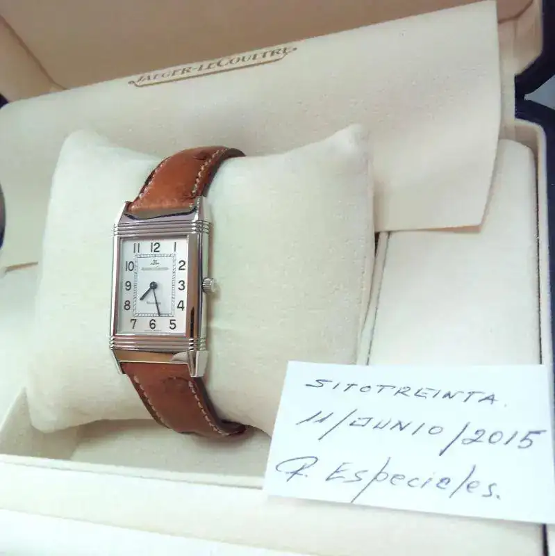Hola, vendo este elegante reloj, Jaeger Lecoultre Reverso Classic, practicamente nuevo, usado en poquisimas ocasiones, de cuerda manual, por sus dimensiones es válido para hombre y mujer. Dispone de set completo, (caja interior y exterior, libro de garantía, certificado de garantía, manual de instrucciones), Cierre deployante y pulsera de cuero, todo original y en un estado como dije antes practicamente nuevo.