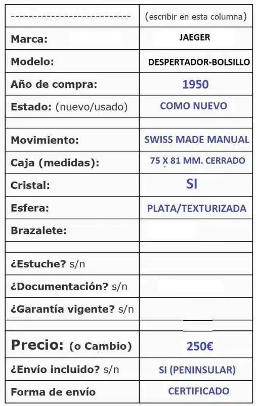 IMPECABLE, CON LOGO MARCA. SUPERIOR: JAEGER, INFERIOR: SWWIS MADE