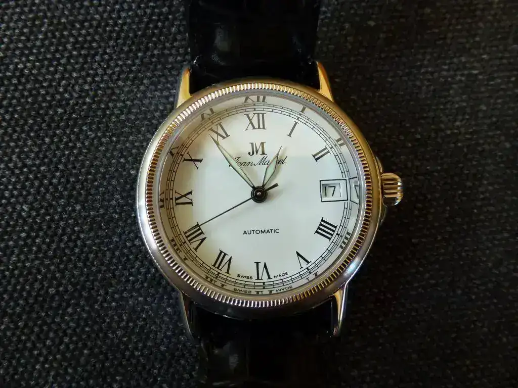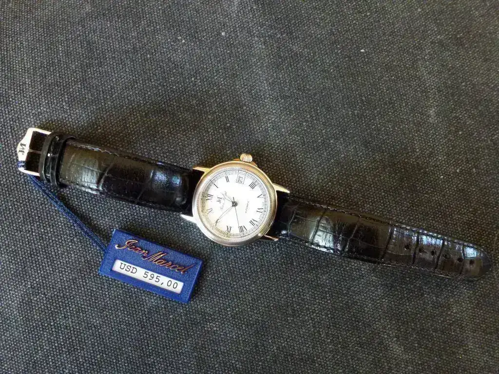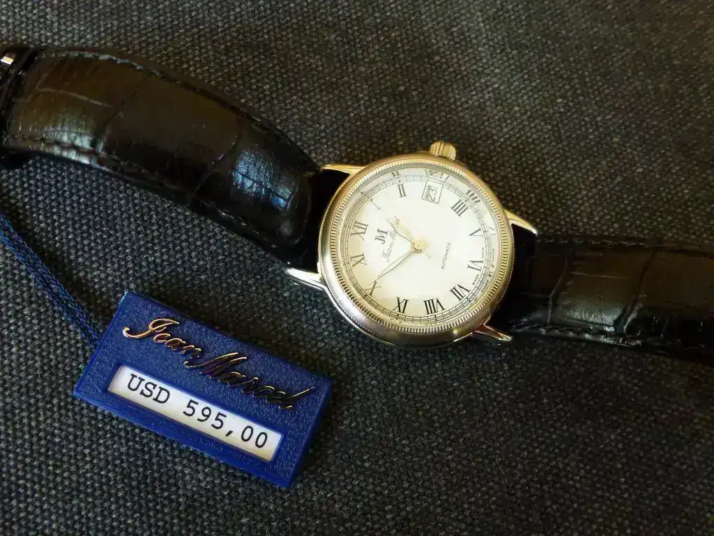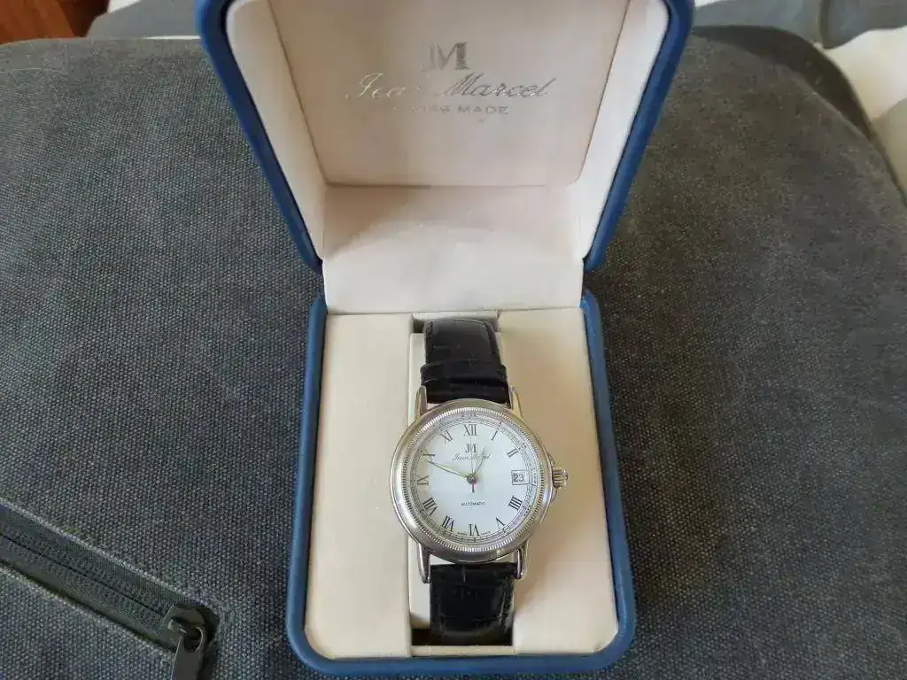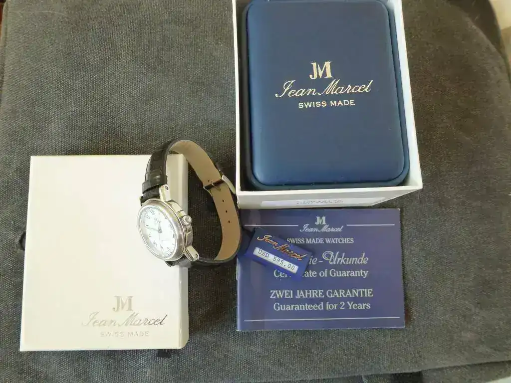 Vendo este reloj Jean Marcel (una marca poco conocida por el foro, pero Suiza 100%: https://jeanmarcel.com/de/ ). Totalmente nuevo a estrenar, con toda la dotación original. A reseñar, además de lo que se resume en el modelo-ficha, la corona roscada, 5 ATM, zafiro, tapa atornillada con maquinaria visible, lume (agujas) que ya quisieran algunos divers, y unos acabados (incluyendo correa y hebilla) de primera. Un pequeño reloj ideal para vestir e ir elegante (no todo son divers en la vida...). Todavía mantiene la etiqueta con el PVP: 595,00 $. Puedo enseñarlo en Madrid sin compromiso alguno. Whatsapp: seis6932340tres