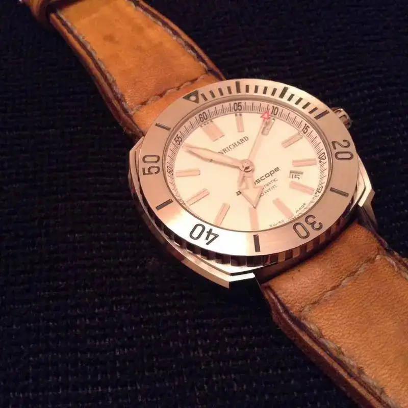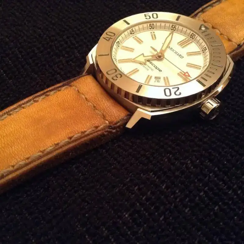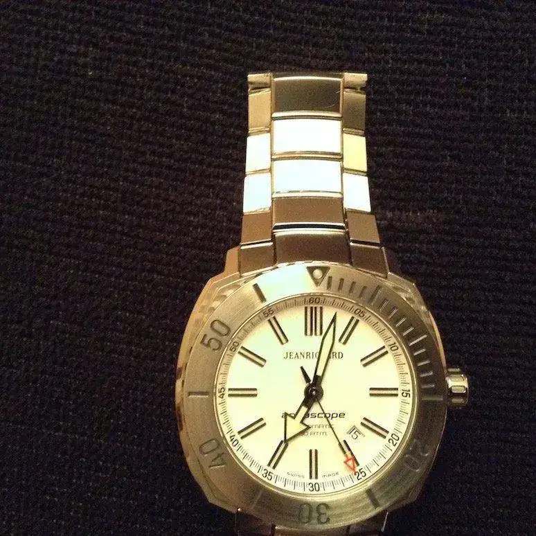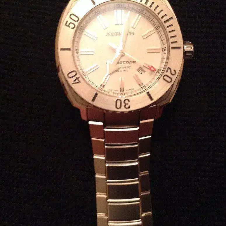 Buenas TardesSaco a la venta un gran diver, todo un Jean Richard Aquascope (300mts) esfera blanca. El armis es espectacular con un mecanizado y calidad increíbles.