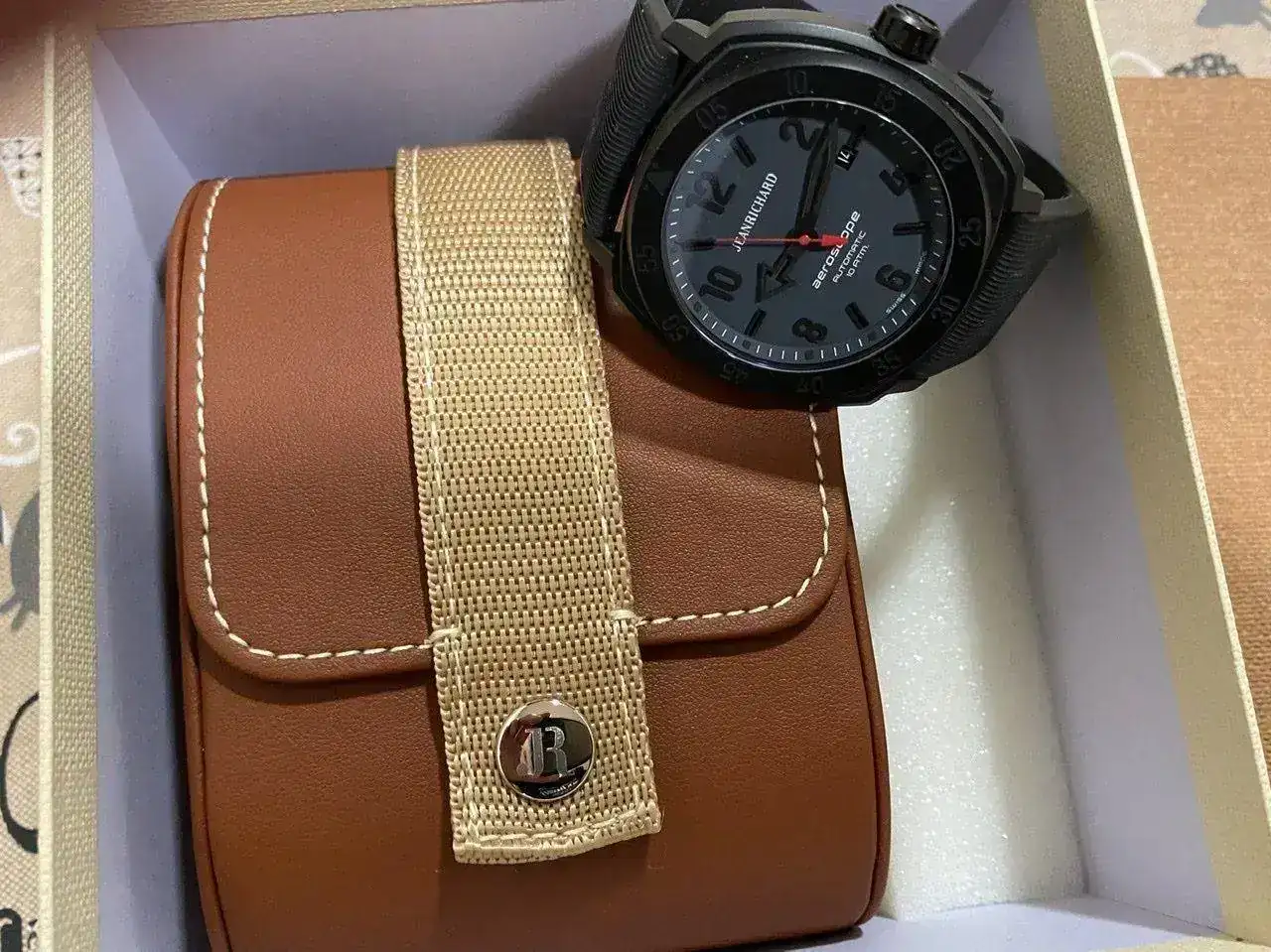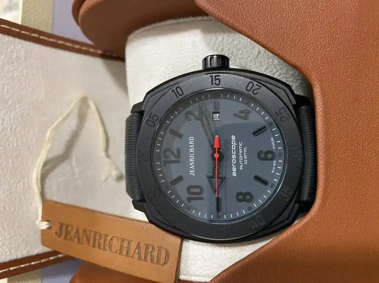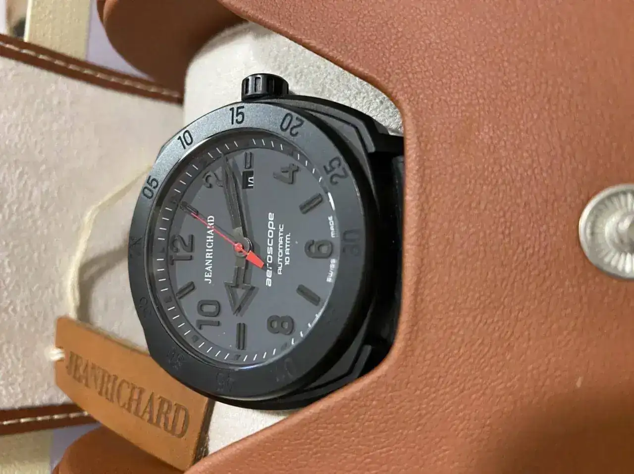 Vendo este espectacular Jeanrichard modelo Aeroscope en Titanio grado 5 y revestimiento DLC. El reloj se ha comprado nuevo hace 4 meses pero no dispone de garantía ni documentación, pero si de todas sus cajas, tarjetero de piel y original funda de viaje Jeanrichard. El reloj está al 99,99 %, no tiene el más mínimo roce o arañazos, únicamente los agujeros extra de la correa, tiene 3 puestas. La correa es la versión que sirve para todas las muñecas