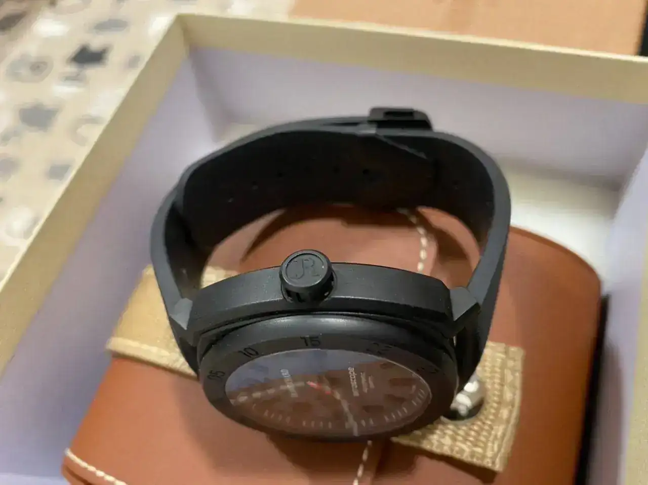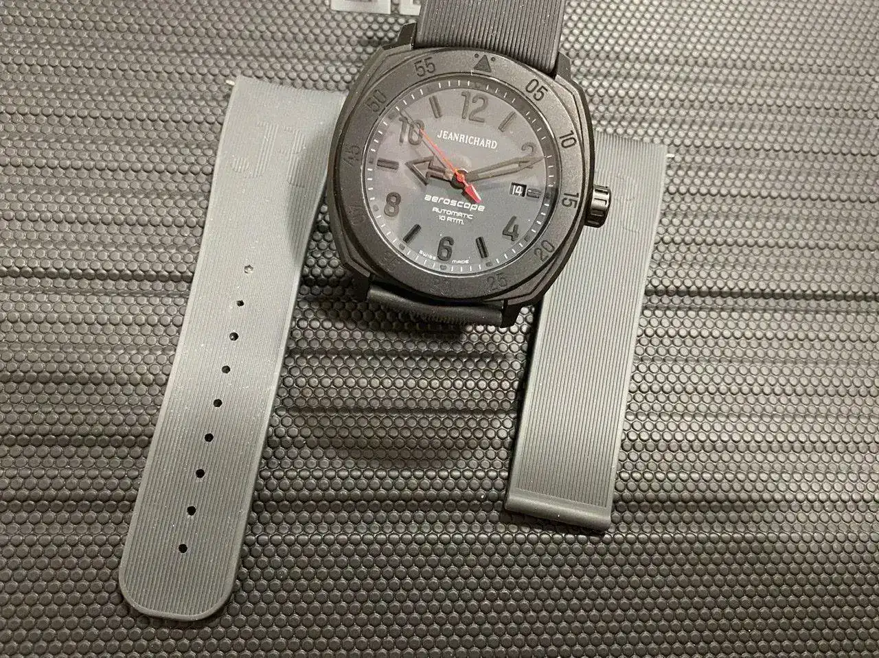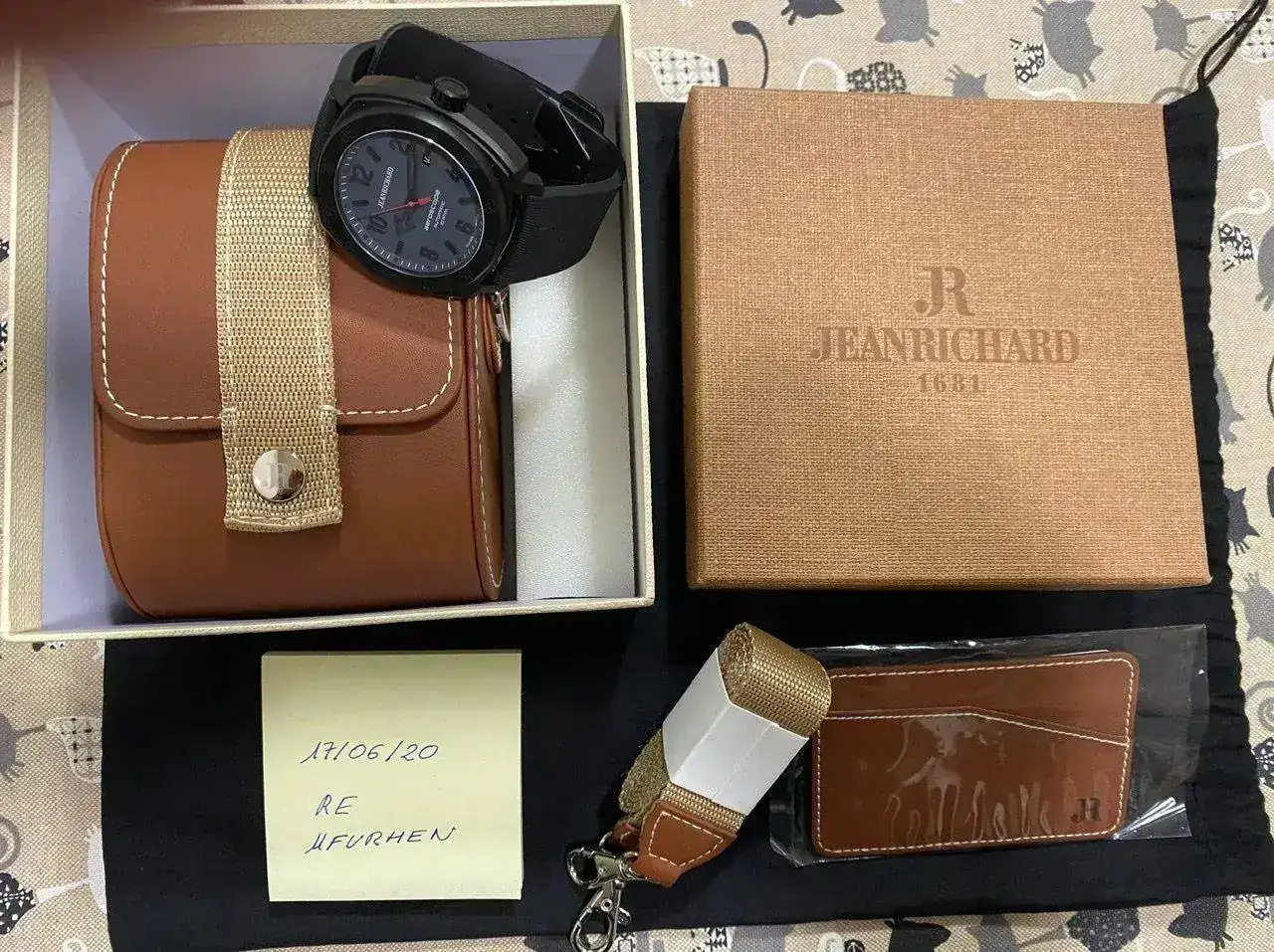 Vendo este espectacular Jeanrichard modelo Aeroscope en Titanio grado 5 y revestimiento DLC. El reloj se ha comprado nuevo hace 4 meses pero no dispone de garantía ni documentación, pero si de todas sus cajas, tarjetero de piel y original funda de viaje Jeanrichard. El reloj está al 99,99 %, no tiene el más mínimo roce o arañazos, únicamente los agujeros extra de la correa, tiene 3 puestas. La correa es la versión que sirve para todas las muñecas