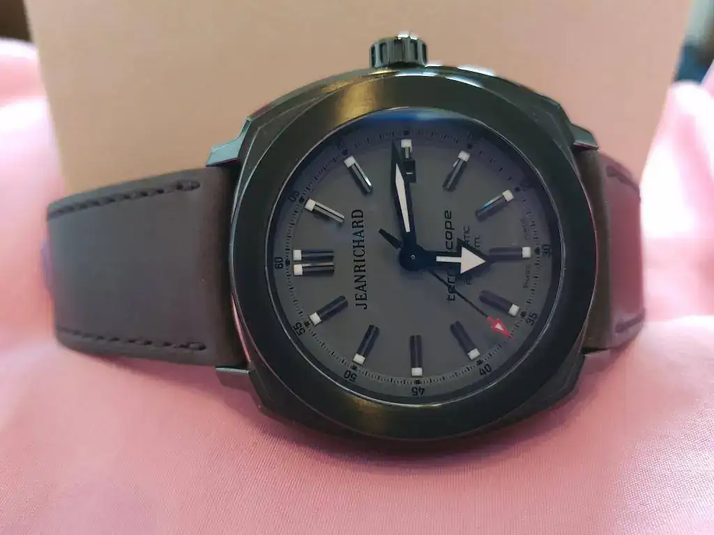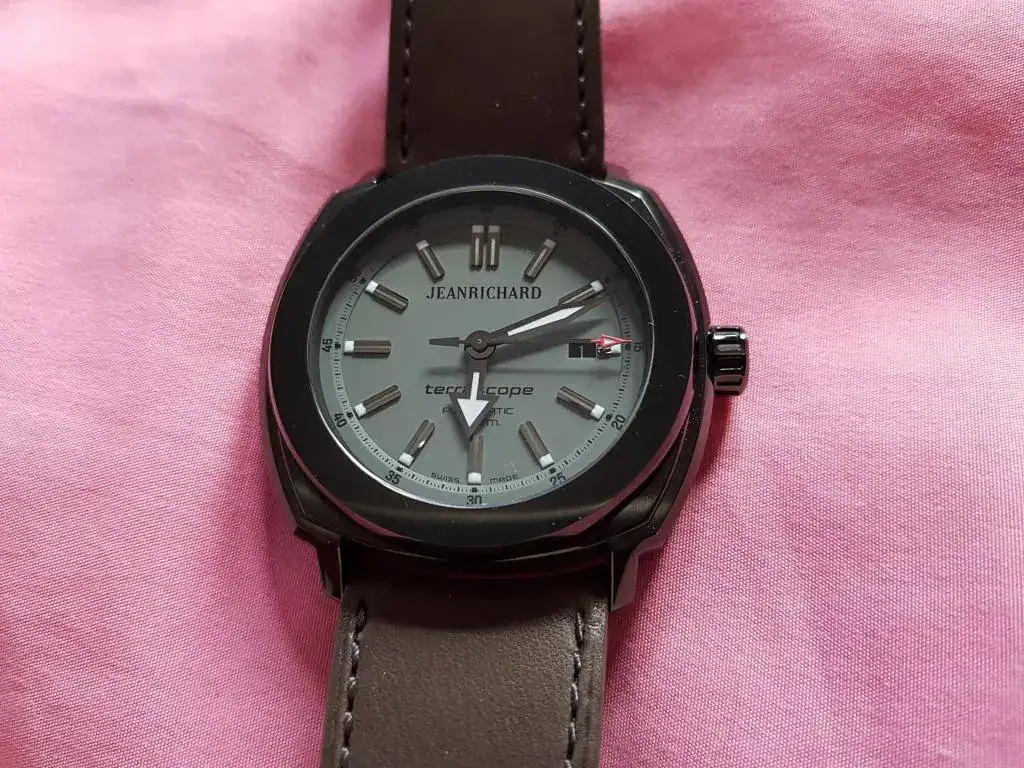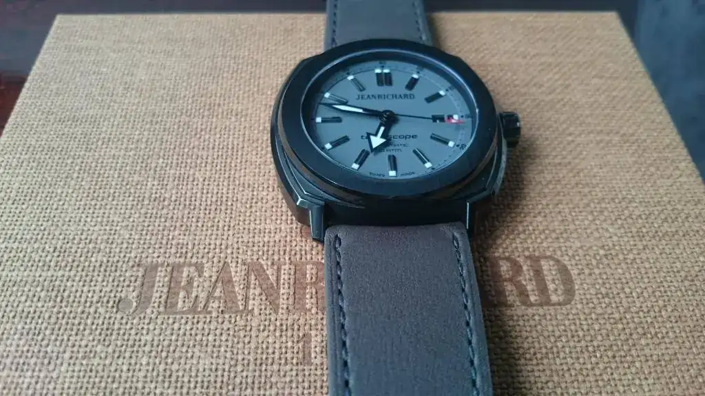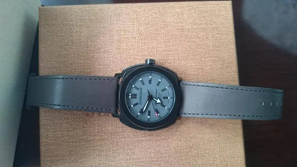Pongo a la venta, aunque aún no lo crea, este espectacular y poco visto JEANRICHARD TERRASCOPE con correa de piel de Barenia de máxima calidad.