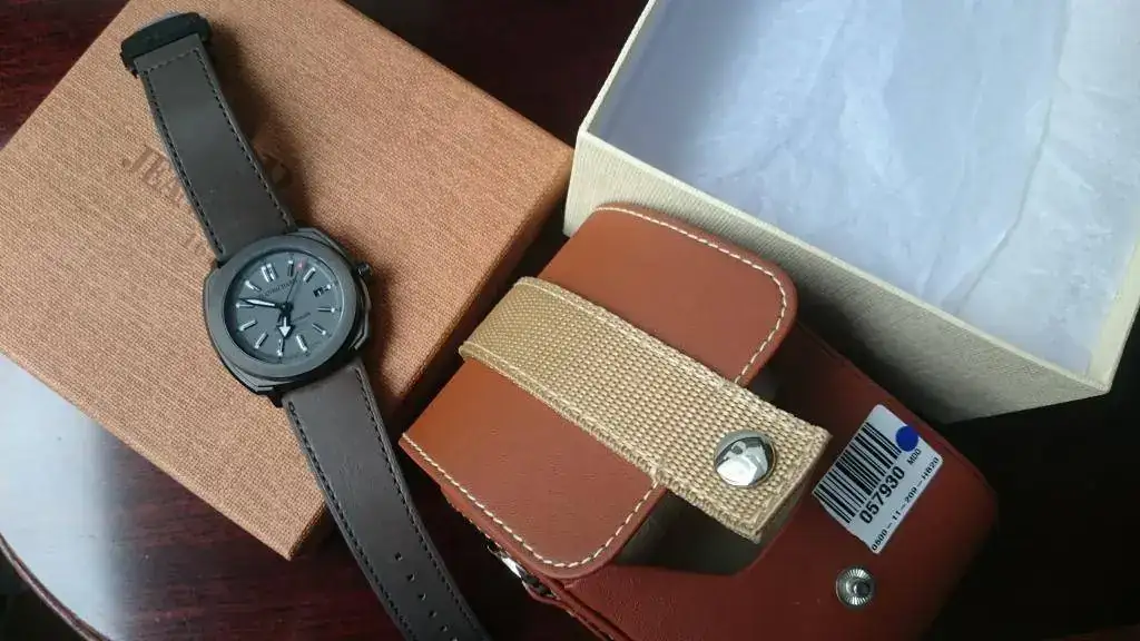El reloj esta nuevo, aun con sus plasticos, fue adquirido en Diciembre cómo auto regalo de cumpleaños y tiene, literalmente, 1 puesta de no más de 3 horas de esa cena, ya que otro día que iba a salir llovió.
