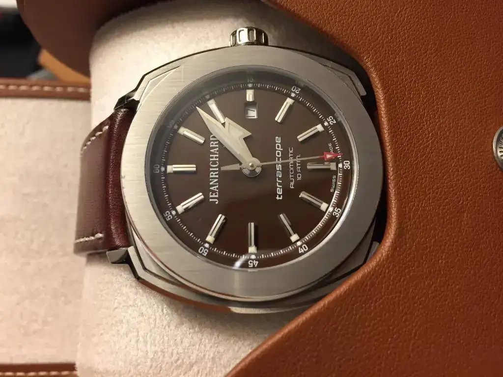 Buenas, vendo precioso y elegante jeanrichard terrascope, esfera marrón piel marrón, con poco uso en muy buen estado , las fotografías reflejan su excelente estado y resaltar alguna mínima marca en el bisel y marquitas en el fondo nada importantes. Cualquier duda privado. Su precio ronda los 3000 euros y yo lo dejo en 1150 euros porte por correo certificado incluido.