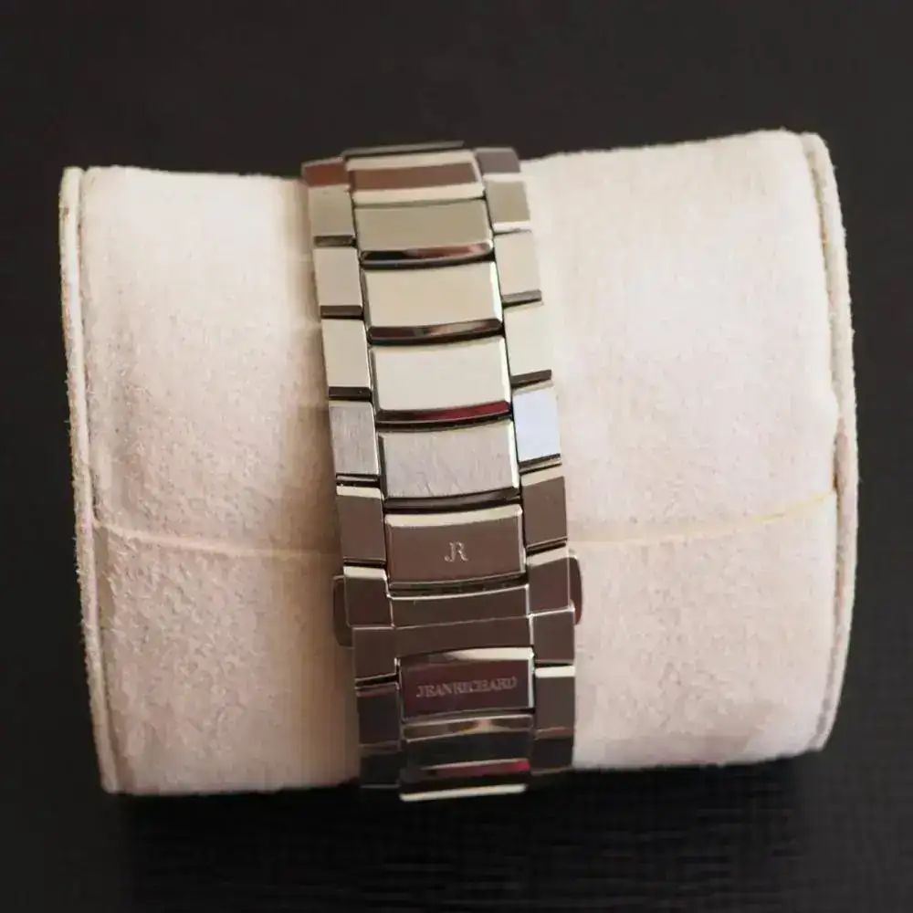 En su interior lleva el calibre JR60, que es la denominación que JeanRichard da al clásico Sellita SW200, calibre robusto y suficientemente comprobado y que podrá ser fácilmente mantenido por nuestro relojero habitual.