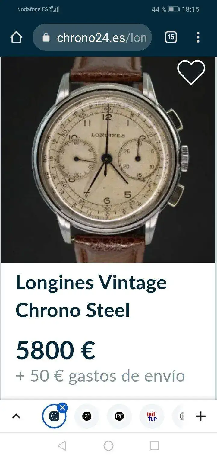 Perdón, pero voy a rehacer la pregunta; porque hasta cuándo la leo yo me chirría. Parece que lo pregunto desde un punto de vista mercantilista total respecto del Longines, o sea, que no veas qué poco costó al comprarlo, y por cuánto se vende ahora. No, no voy por ahí, y no me has malinterpretado.Pues eso no lo sé exactamente.