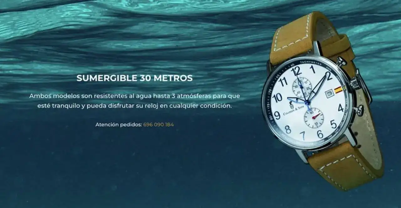 Es curioso que en el anuncio promocionen el reloj metido bajo el mar, cuando la estanqueidad de 30m sólo permite alguna salpicadura.