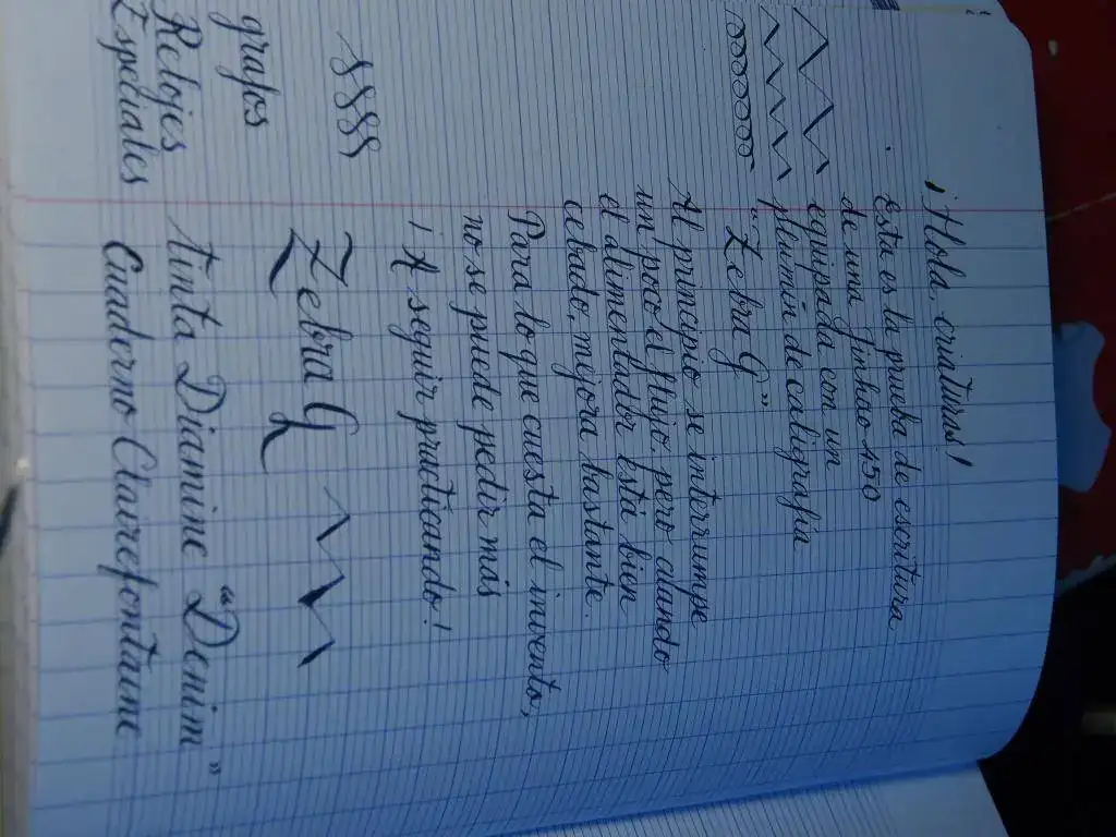 Animado por algunos videos en los que he visto hacer lo mismo, me he decidido montar un plumín de caligrafía Zebra G en una estilográfica Jinhao 450. También he visto que se puede hacer con una Jinhao 159, pero de momento los resultados obtenidos con la 450 no me disgustan del todo. Hay que adaptar un poco la curvatura del plumín para que se acople bien en el alimentador y tal vez lo ideal sería acortar un poco su longitud, pero funciona. Una vez que le ha llegado suficiente tinta al alimentador, la tinta fluye bien y sin interrupciones. Tiene una variación de trazo desde una línea extrafina hasta una de 1,2 mm de grosor, lo que permite iniciarse en la práctica de caligrafía con letras Copperplate o Spencerian.