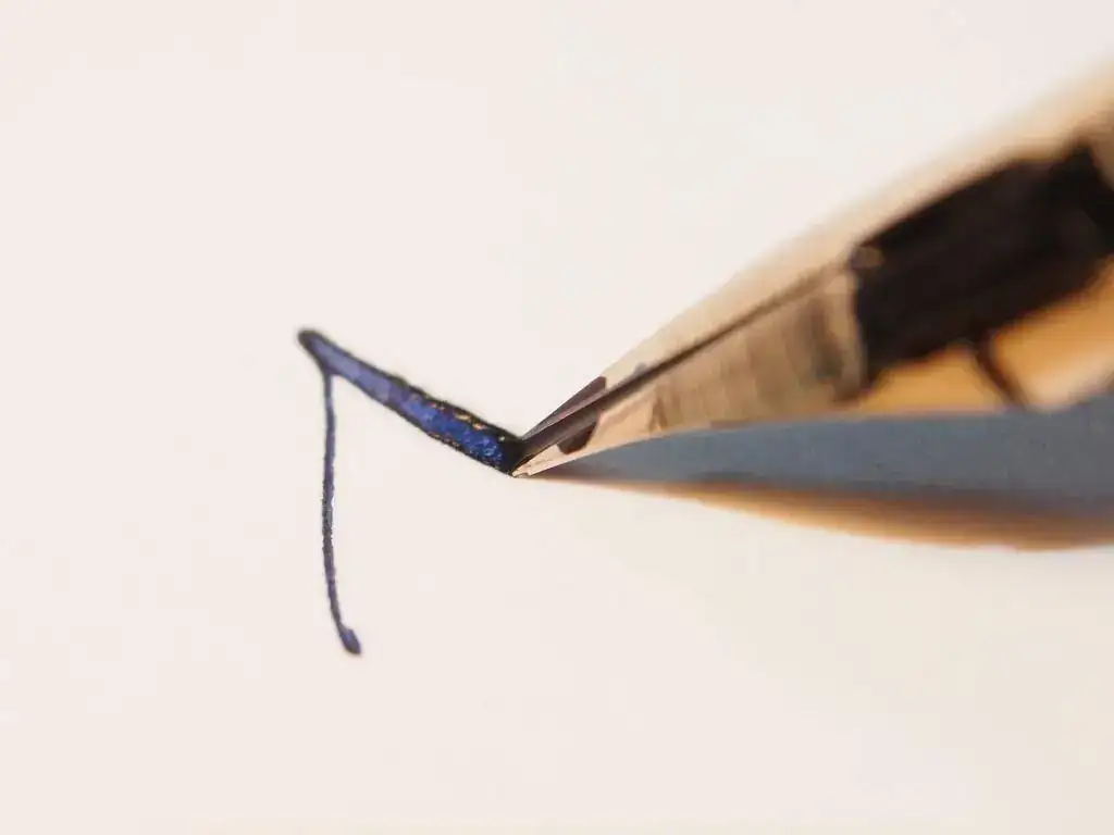 Aquí van unas fotos algo apresuradas de la "franken-pluma" resultante y de las primeras pruebas de caligrafía.