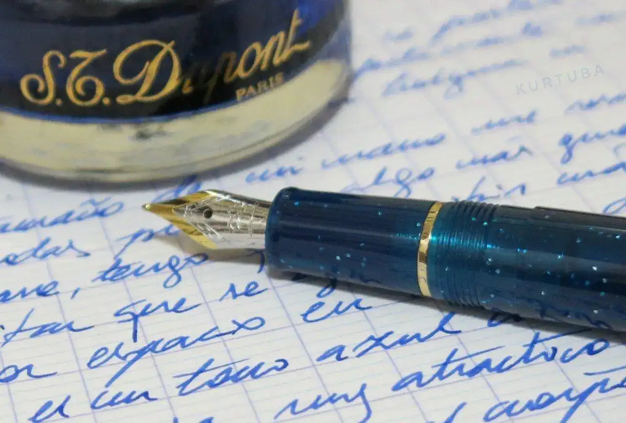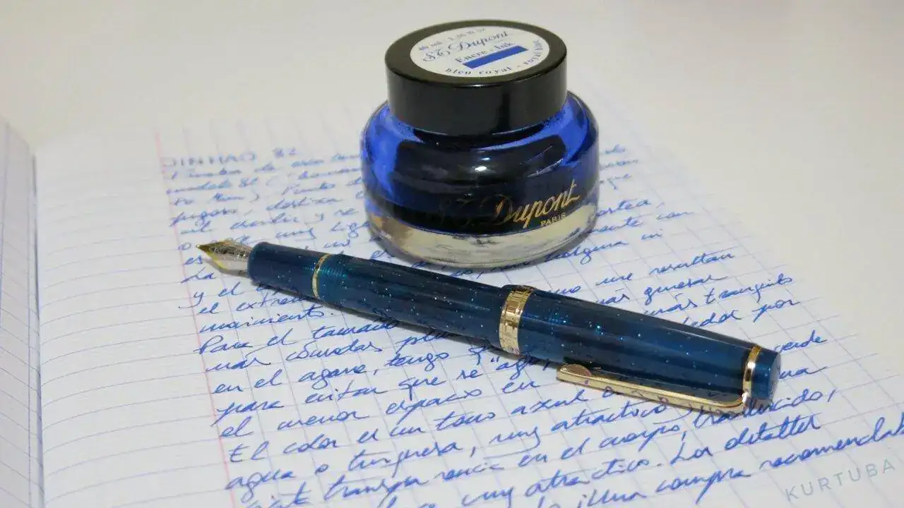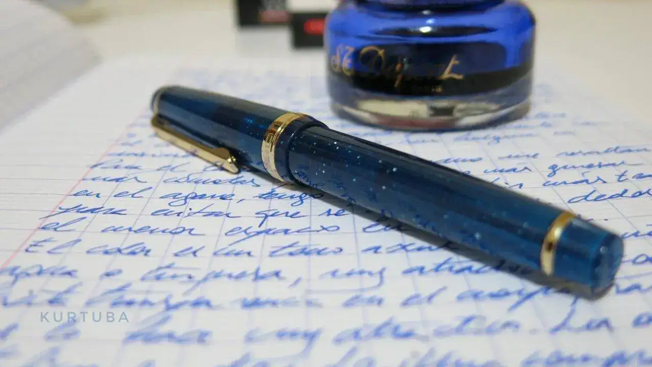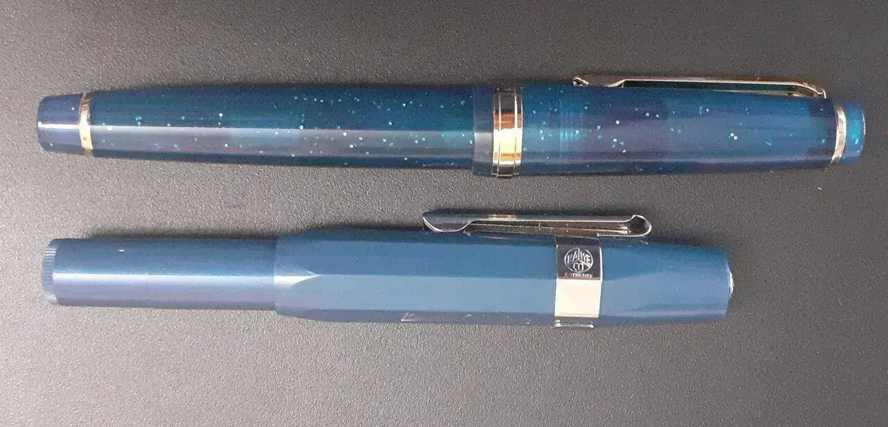 En mano es muy atractiva, más que en las fotos del vendedor, la pluma viene en color "azul profundo", con motas de purpurina dorada, a juego con los detalles metálicos. En conjunto, para mí ha sido una buena compra, estoy satisfecho.