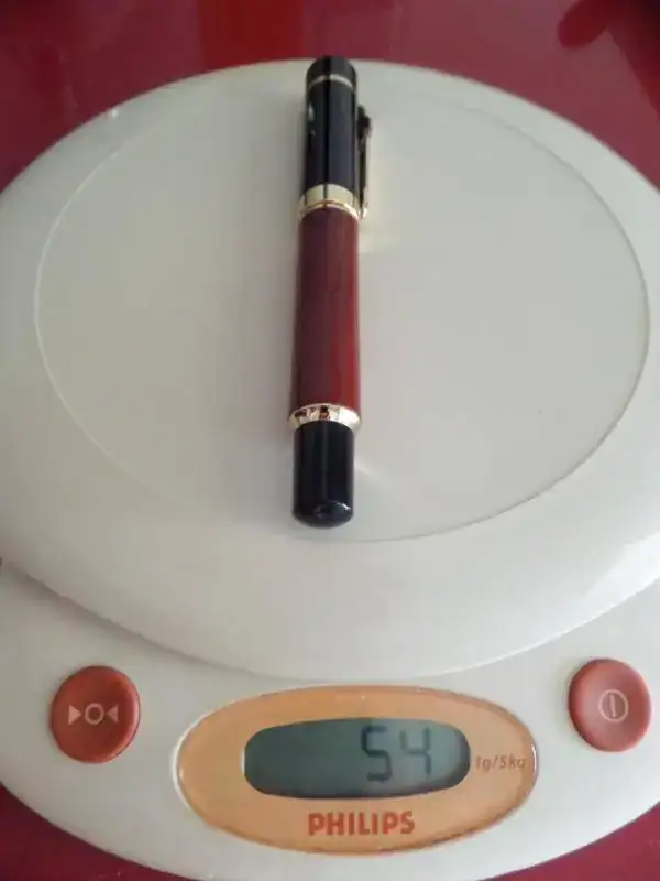 Sus problemas comienzan cuando se le pone al lado la Pelikan M600. De tamaño similar a la 8802, su resina es incomparablemente más brillante, sus dorados y su plumin brillan sin imperfección alguna (sí se aprecian, fijándose mucho, pequeñísimas imperfecciones en las Jinhao) y su tacto al escribir es mucho más agradable. Muy bien equilibrada, permite escribir mucho y bien, posteandose sin problemas.