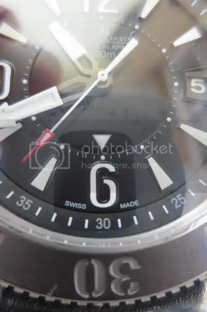 El reloj que os presento tiene caja de titanio, dispone de dos brazaletes originales, los dos con el ardillon firmado JLC, uno de piel con un uso muy moderado y un boquete extra y un segundo que es una nato tipo Bond sin uso ninguno. Este reloj dado el tamaño de mi muñeca no ha podido ser usado con las correas originales; el reloj es la referencia 183T470 y es una serie limitada a 1.500 unidades, que le hace todava un poco mas exclusivo si cabe.
