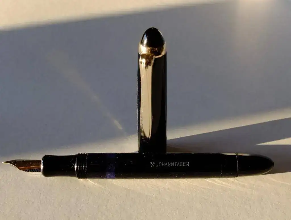 Os muestro una Johann Faber que soy incapaz de datar y que está pocha. No he encontrado información en la red. Me hace ilusión repararla, tiene buen porte y escribe suave. Es una pluma modesta.