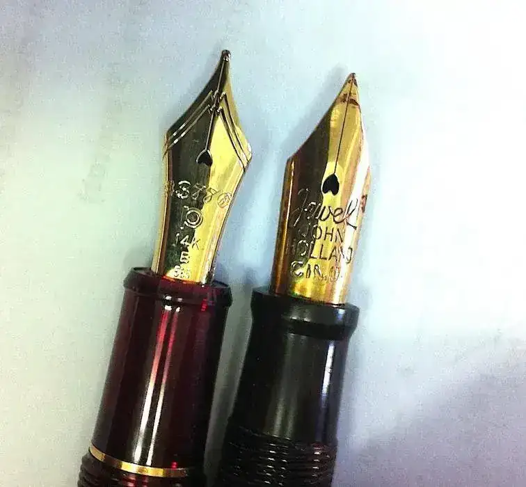Lo más sorprendente es el enorme tamaño de su plumín, marcado con Jewel (que dio nombre al modelo), John Holland, Cinc O (por Ohio). Comparado con el de la 3776 no tiene nada que envidiarle, es ancho, rígido y con alimentador de ebonita. Yo diría que anda entre un M y un B ya que tiene un cierto punto de flex aunque muy poco acusado.