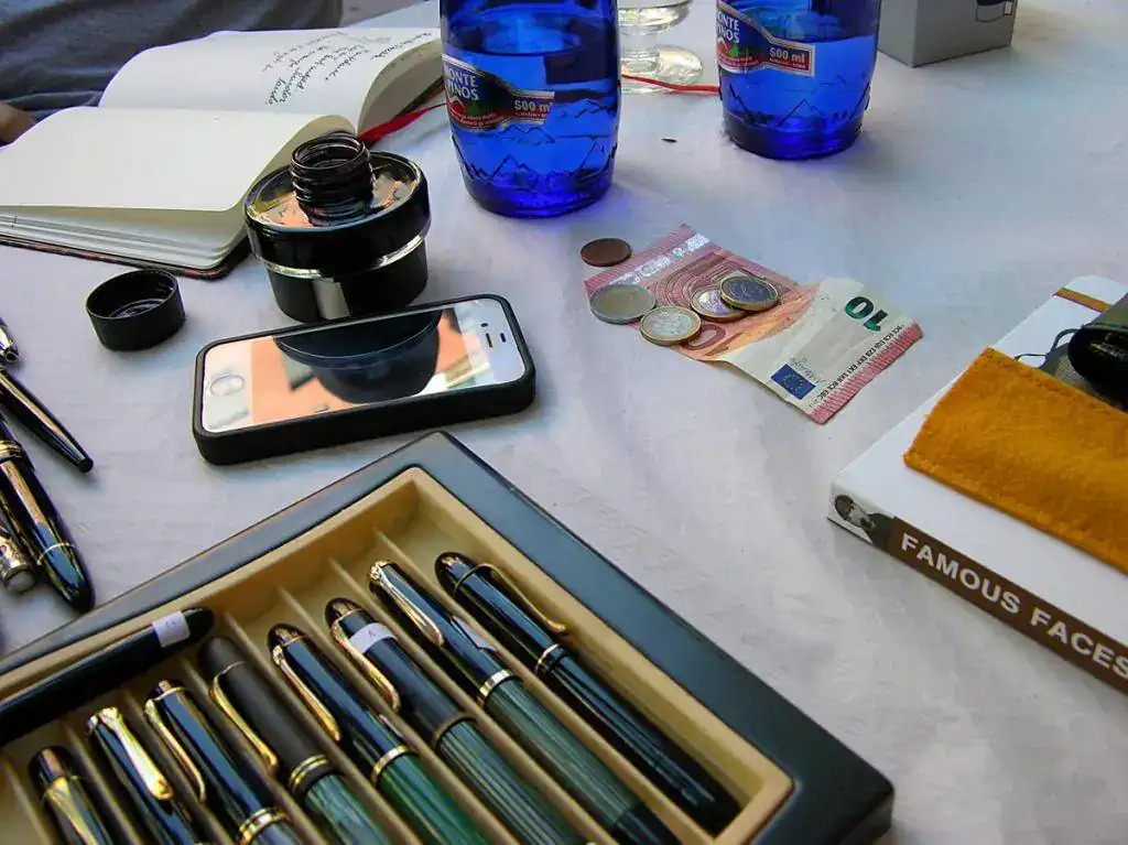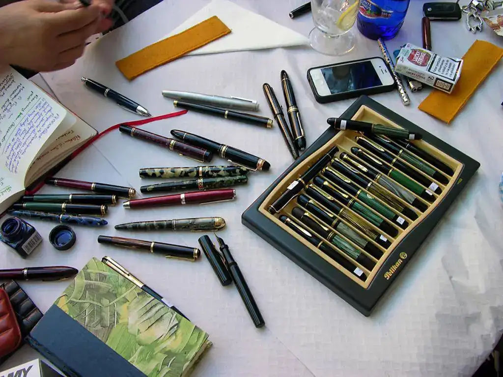 Dominaron la reunión los productos alemanes, encabezados por las pelikanes, en muchos de sus modelos, desde la Pelikan 100 hasta las modernas Souverain, especialmente abundantes en el tamaño M400, además de alguna Ibis camuflada.