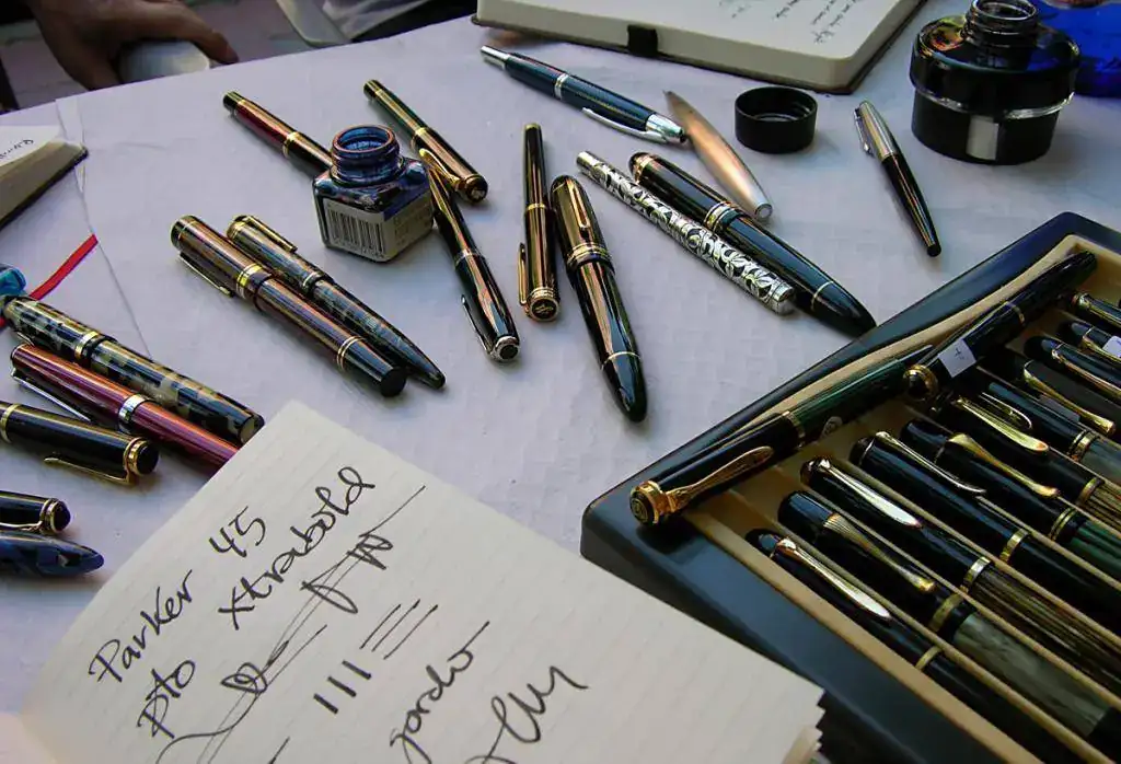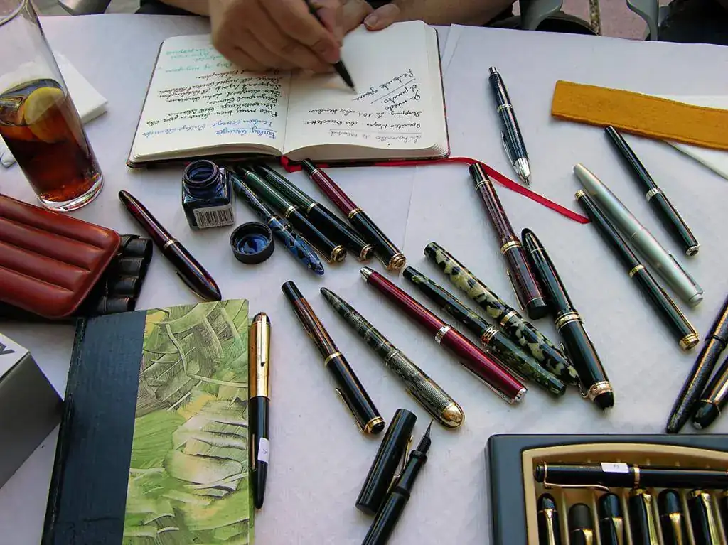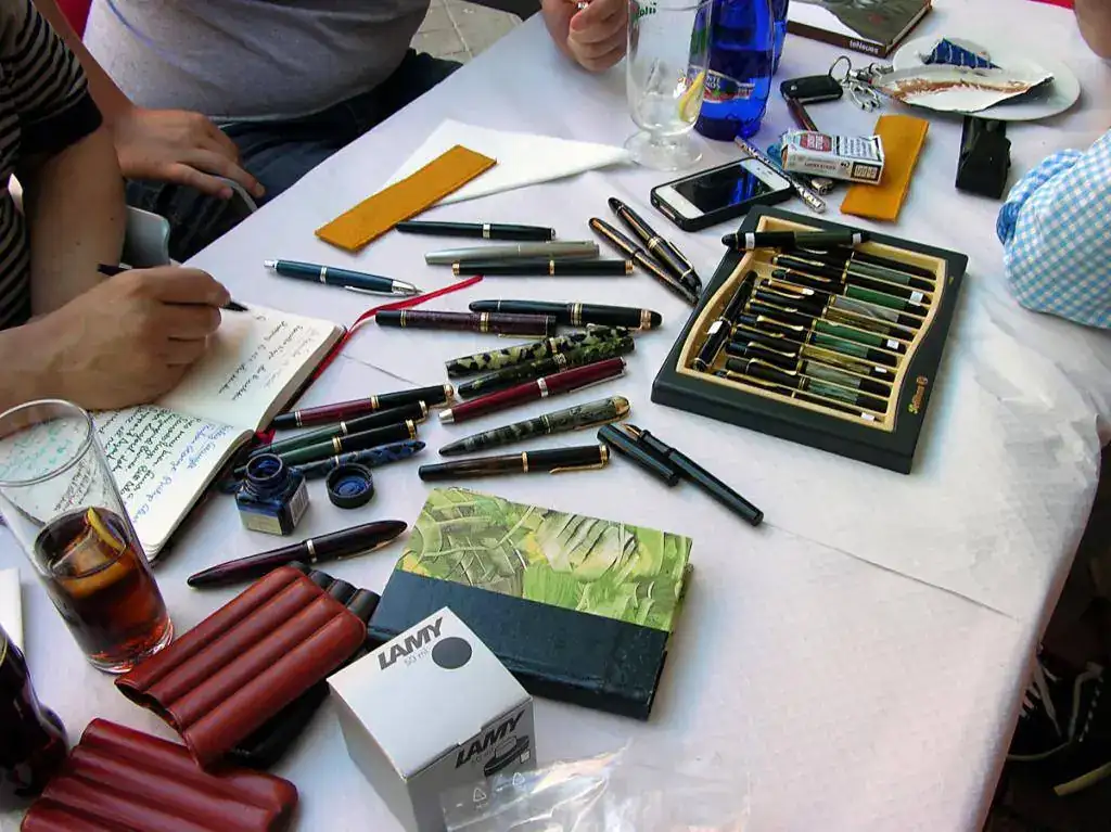En estas sesiones se habla mucho, se bebe un poco, chorrea la tinta en abundancia y cambiamos algunas de nuestras plumas por otras que nos hacen tilín. Sabedores como somos de los buenos cuidados y mimos que han recibido, cambian de mano con facilidad en reciprocidad con otra equiparable. Y aunque pueda parecer impensable, siempre se llega a un acuerdo, sin apenas derramamiento de sangre.