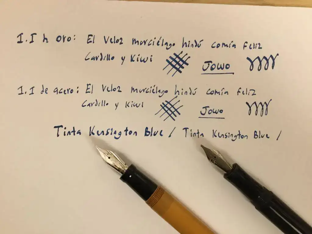 Las pedí las dos con plumines stub 1.1, uno de oro y el otro de acero. Lo hice así a posta, porque al ser Jowo puedo intercambiarlos sin problemas y quería ver la diferencia.