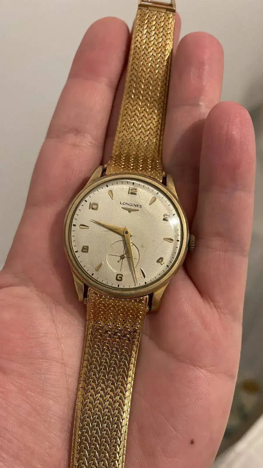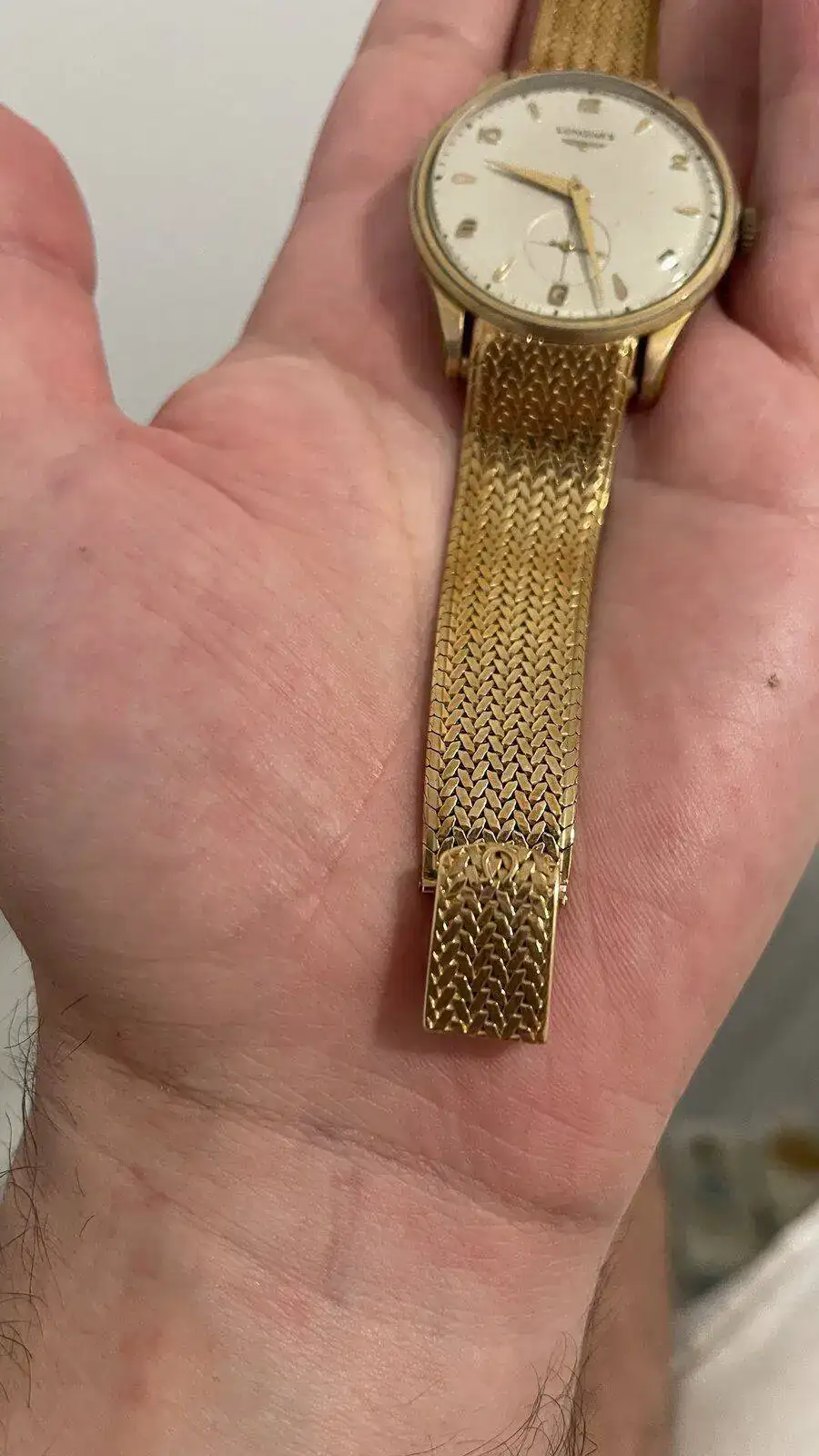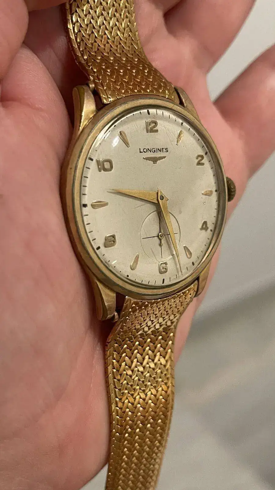 Pues eso que os adjunto unas imágenes de esta Joya familiar por si me podéis, aquellos que tenéis más conocimientos que yo dar alguna información, el reloj es bastante grande para su época 37 milímetros y lo que me llama más la atención es la correa , una milanesa omega de oro ( ni idea de dónde sale) que estoy seguro tiene más valor ( al menos económico) que el propio reloj . ¿Qué os parece?. Muchísimas gracias por vuestro tiempo y las posibles respuestas. Un saludo.