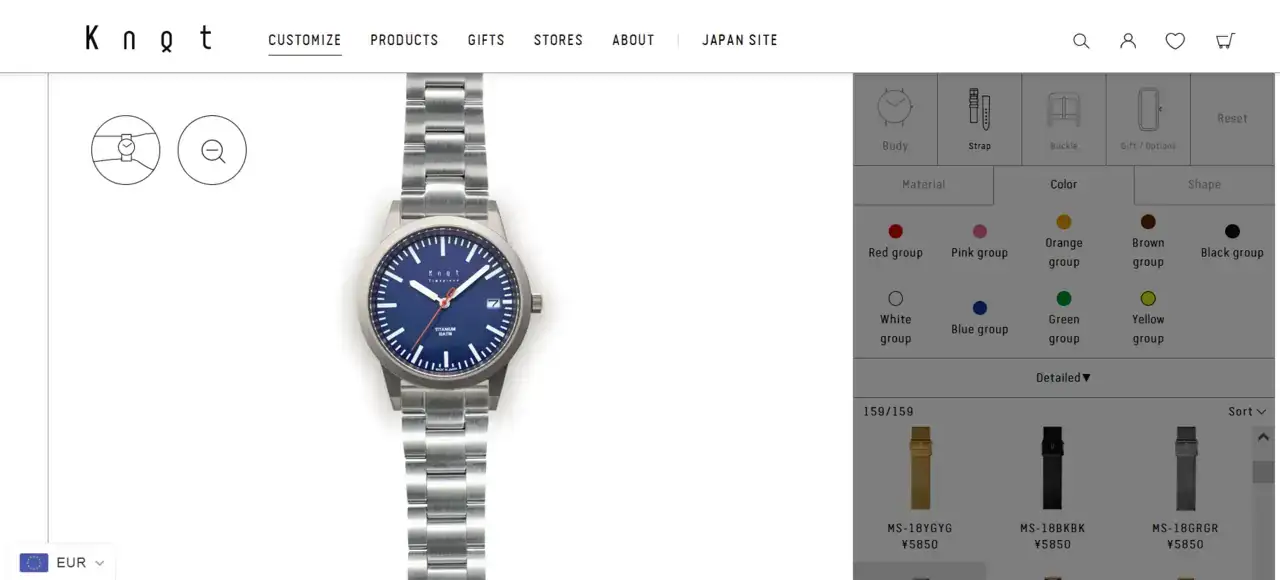 El Knot en cambio es muy goloso, lo puedes tunear a tu gusto en la web eligiendo caja y esfera, correa y hebilla, yo me hice este y sale por unos 200 euros, luego ya no sé cuánto será el palo de aduanas y envío.