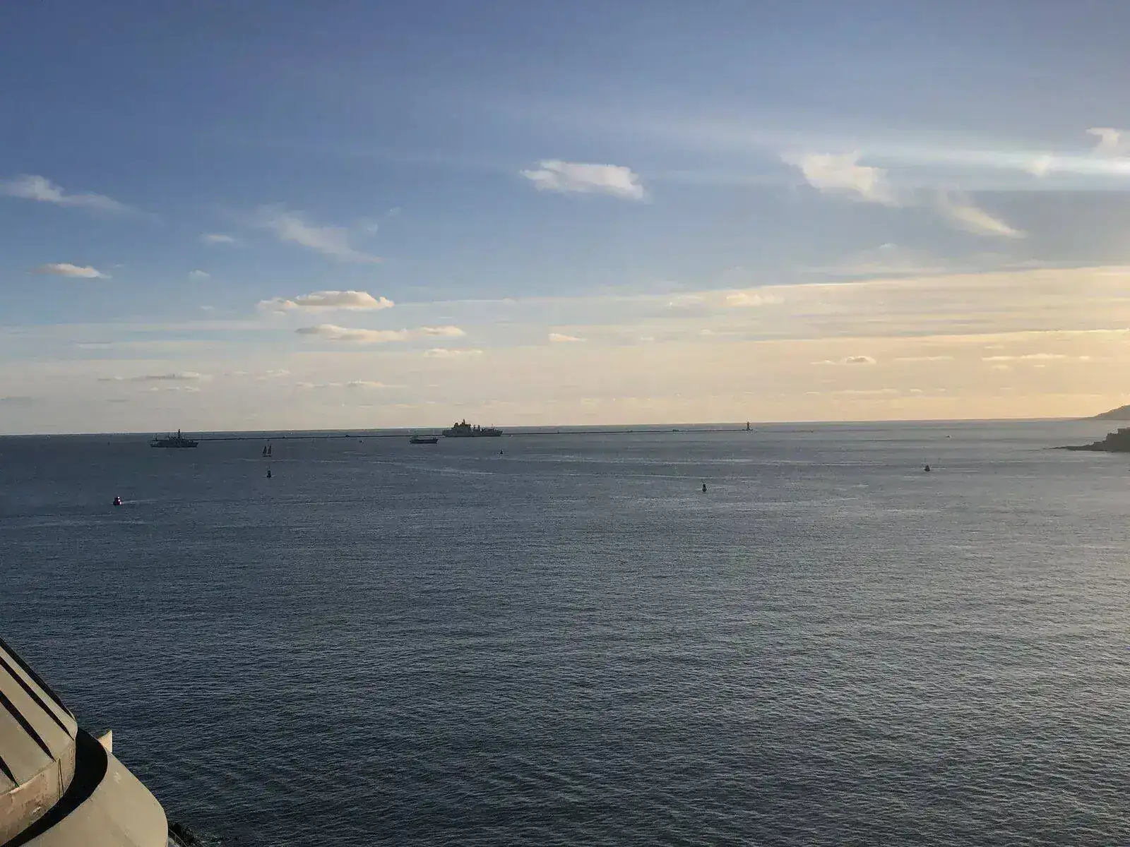 Desde aquí hay una bonita vista de la bahía de Plymouth con el rompeolas al fondo y un par de barcos de la Marina haciendo sus maniobras