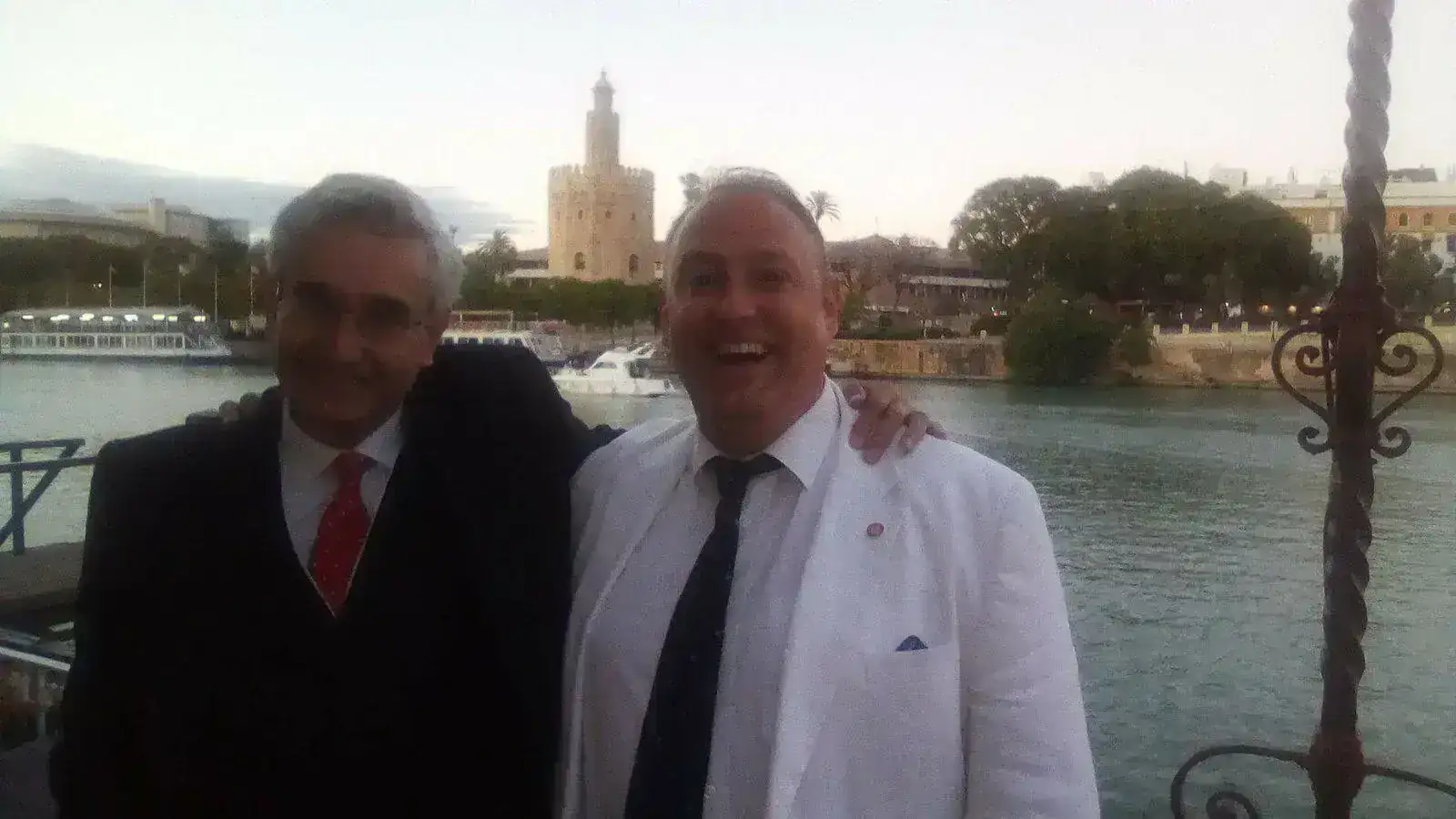 Esta foto está tomada en ese barrio, con la torre del oro al fondo, con mi hermano José Julio Cabanillas,