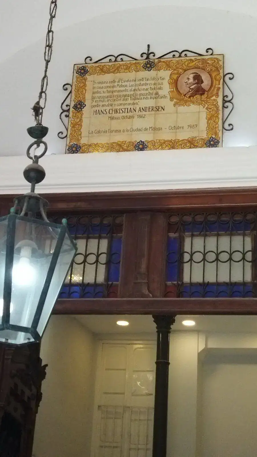 Y lo commemora la placa donado por la colonia danesa de Málaga.