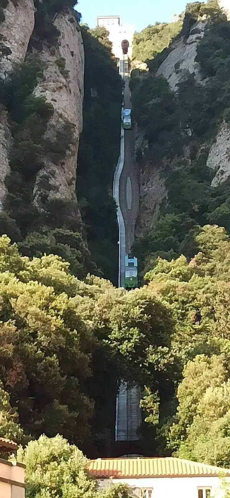 El cremallera, impresionante verlo subir por una pared casi vertical, y que nos lleva hasta la cueva donde se apareció la virgen, nosotros no hemos subido.