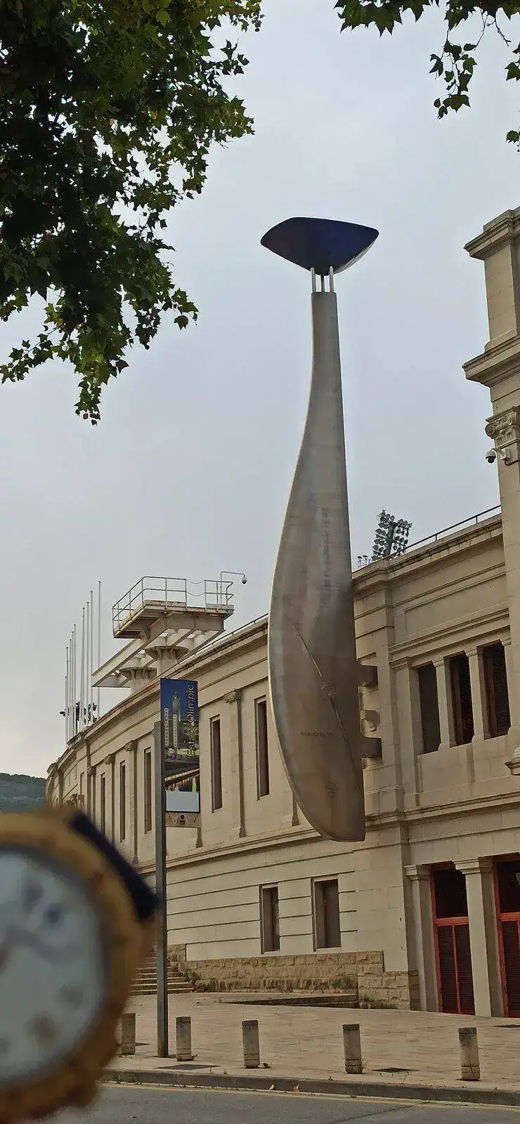 Aquí se puede ver el pebetero de la llama olimpica con forma de timón, en las olimpiadas de 1992, el madrileño y atleta paralímpico Antonio Rebollo, lo encendió lanzando con su arco una flecha en llamas, fué emocionante: